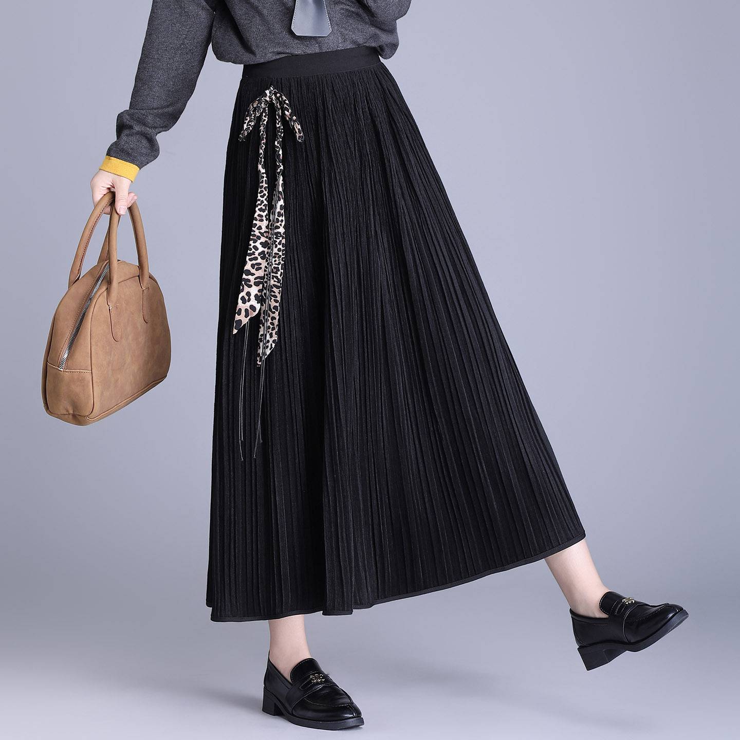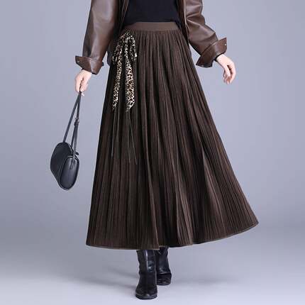 官方正品丽丝绒百褶裙垂感大摆裙长裙秋冬女2025新款高腰显瘦垂感