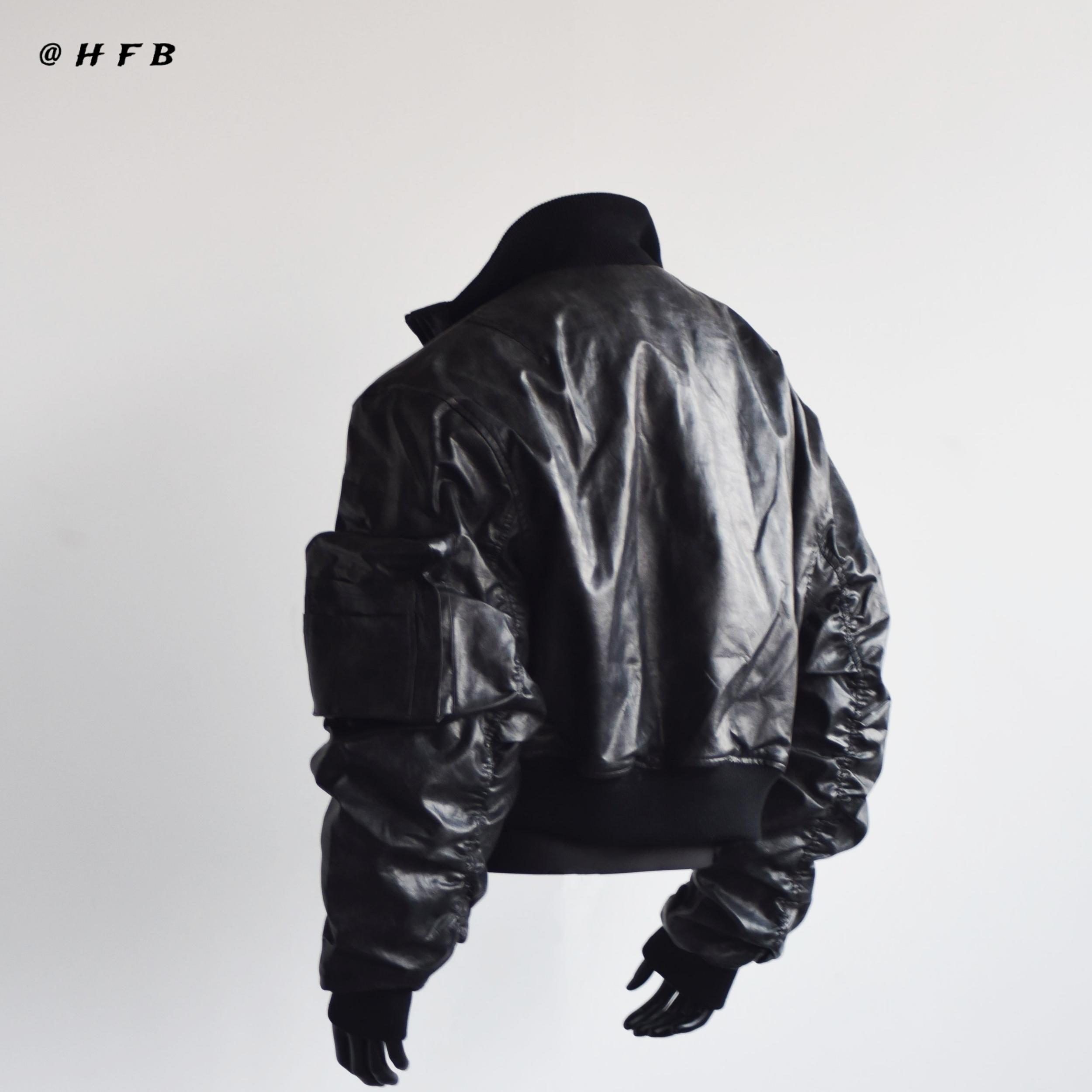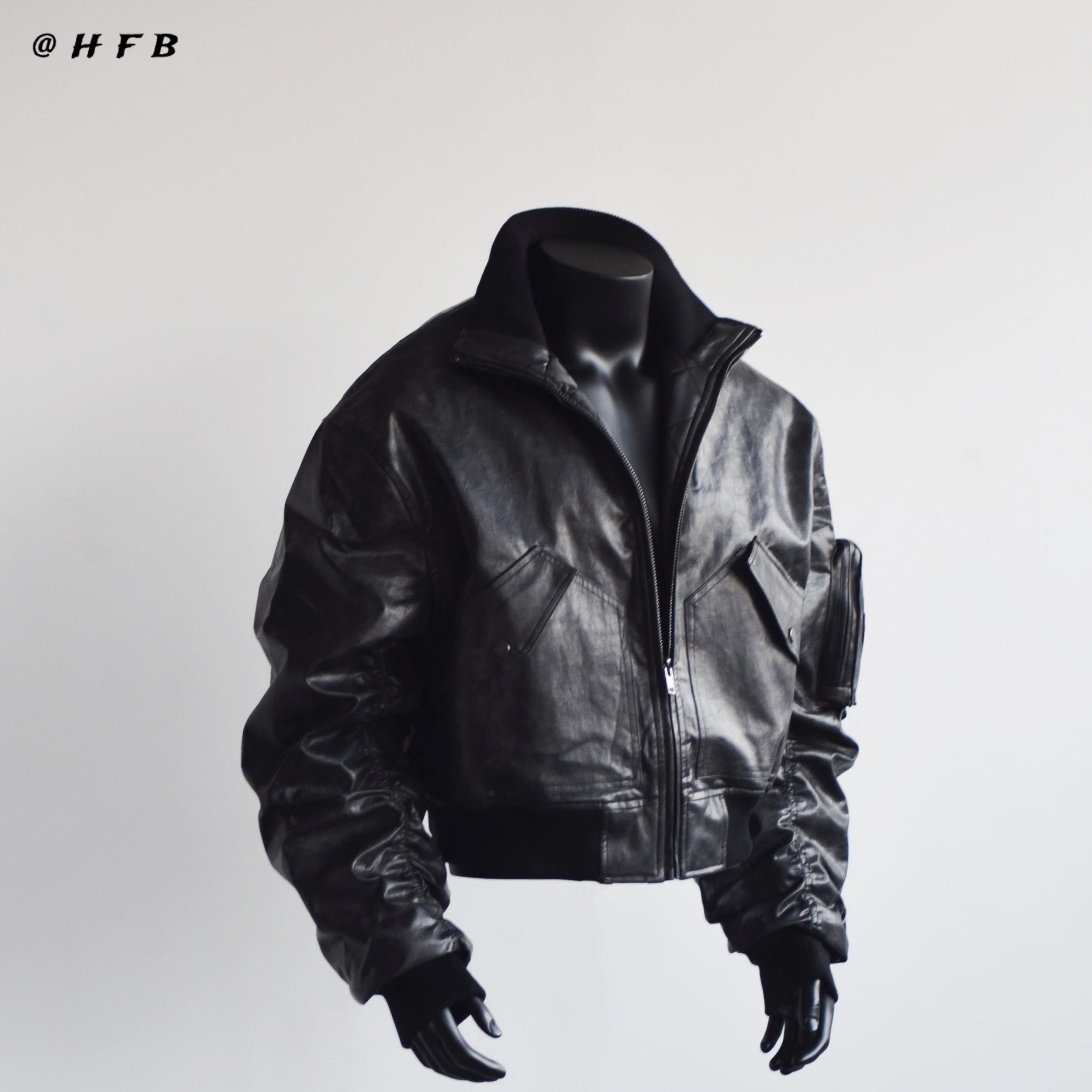【小个子特制款】HFB 秋冬美式bomber短款褶皱皮衣外套夹克男0208