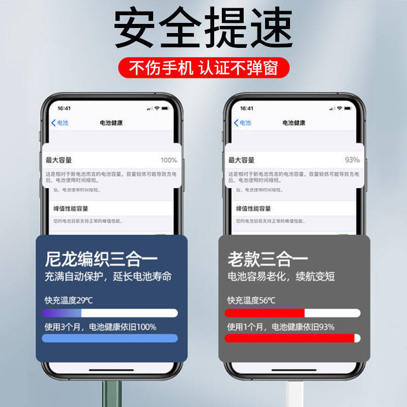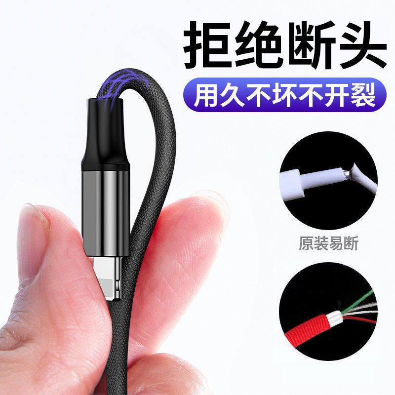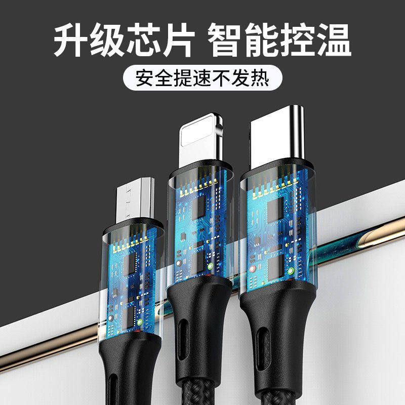 移动电源充电宝短款数据线一拖三快充适用苹果安卓typec充电线多