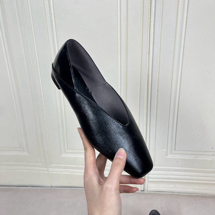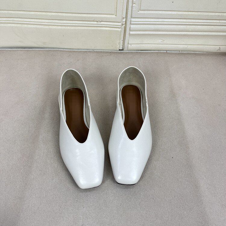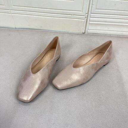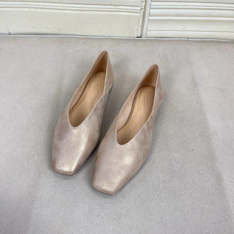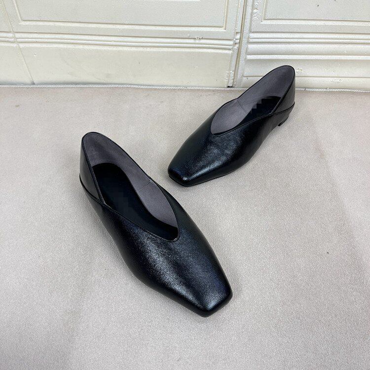 Lady Shoes外贸原单女鞋新款时尚方头纯色浅口V口平底一脚蹬单鞋