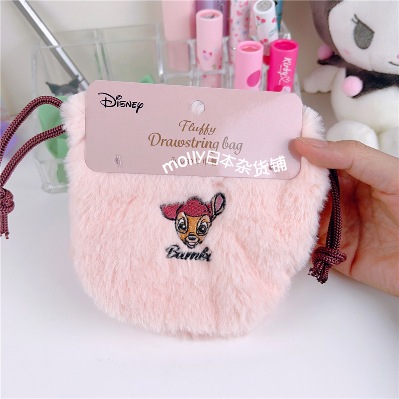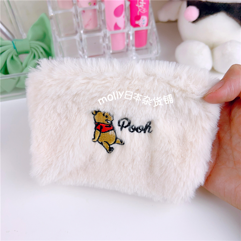 特价 现货日本迪士尼维尼小熊小鹿毛绒绒茸茸收纳包卡包束口袋