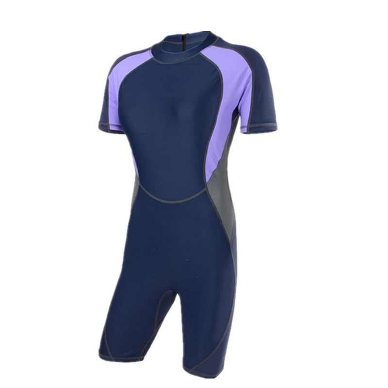 大码泳装短半袖连体五分裤平角长腿运动游泳衣女保守温泉泳衣