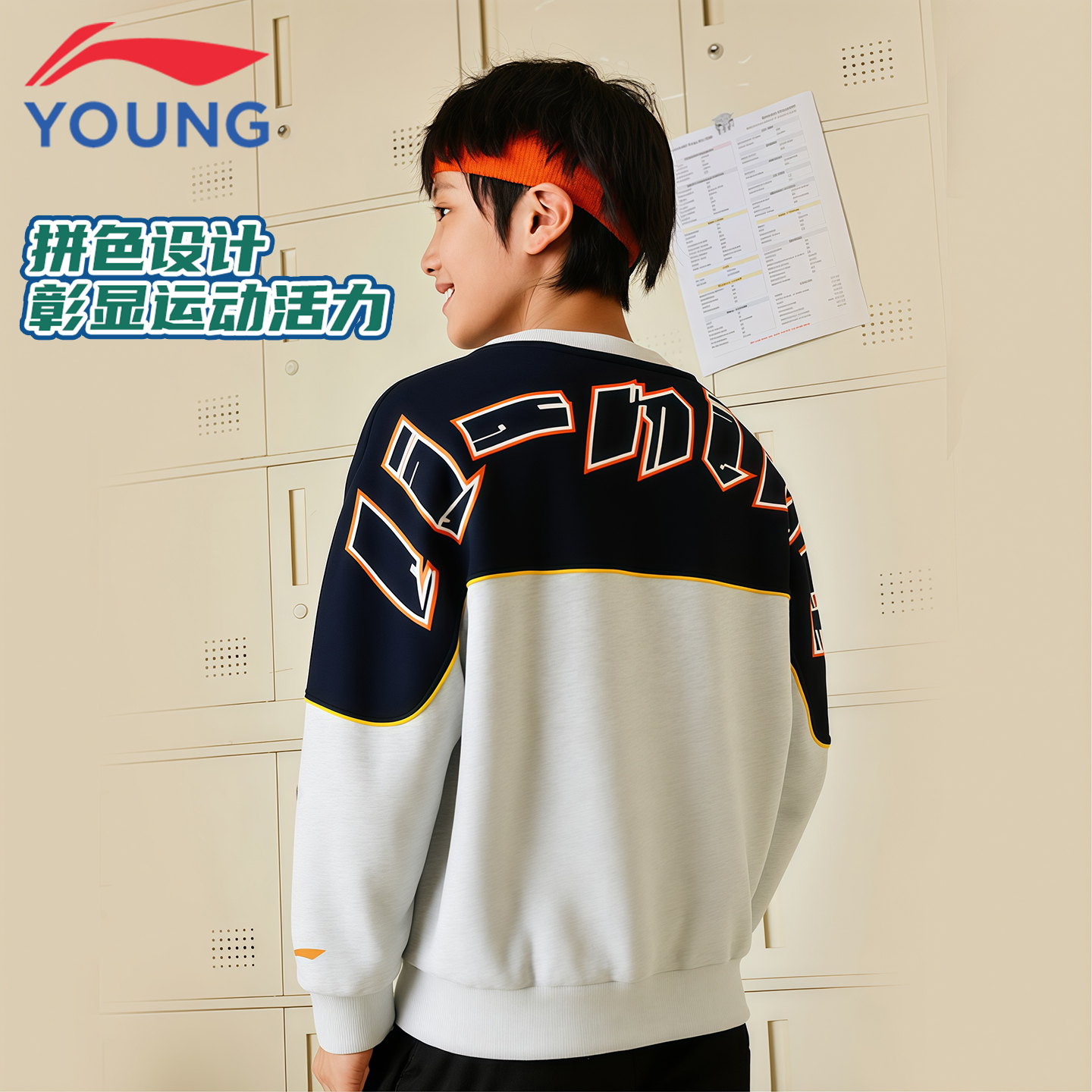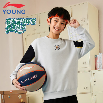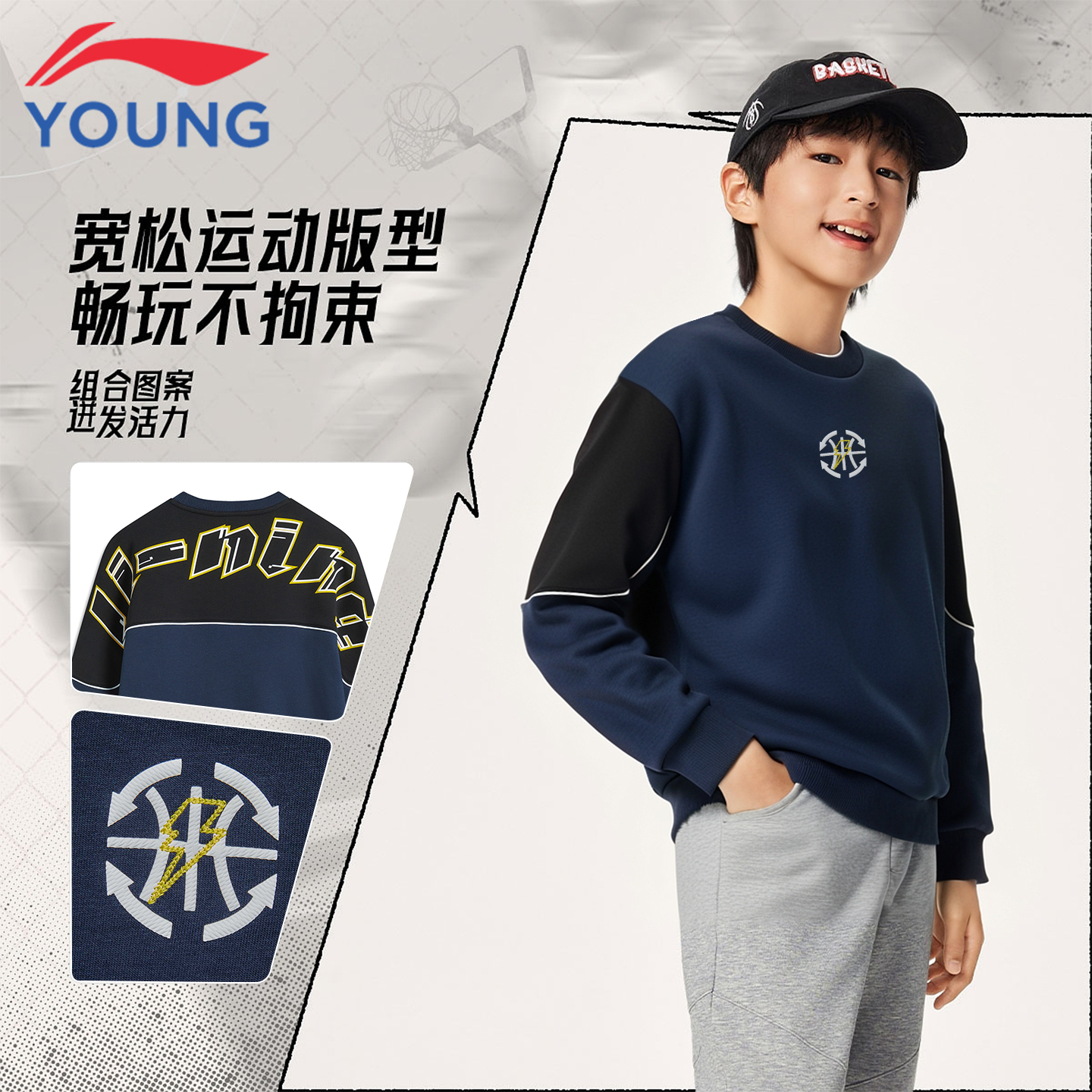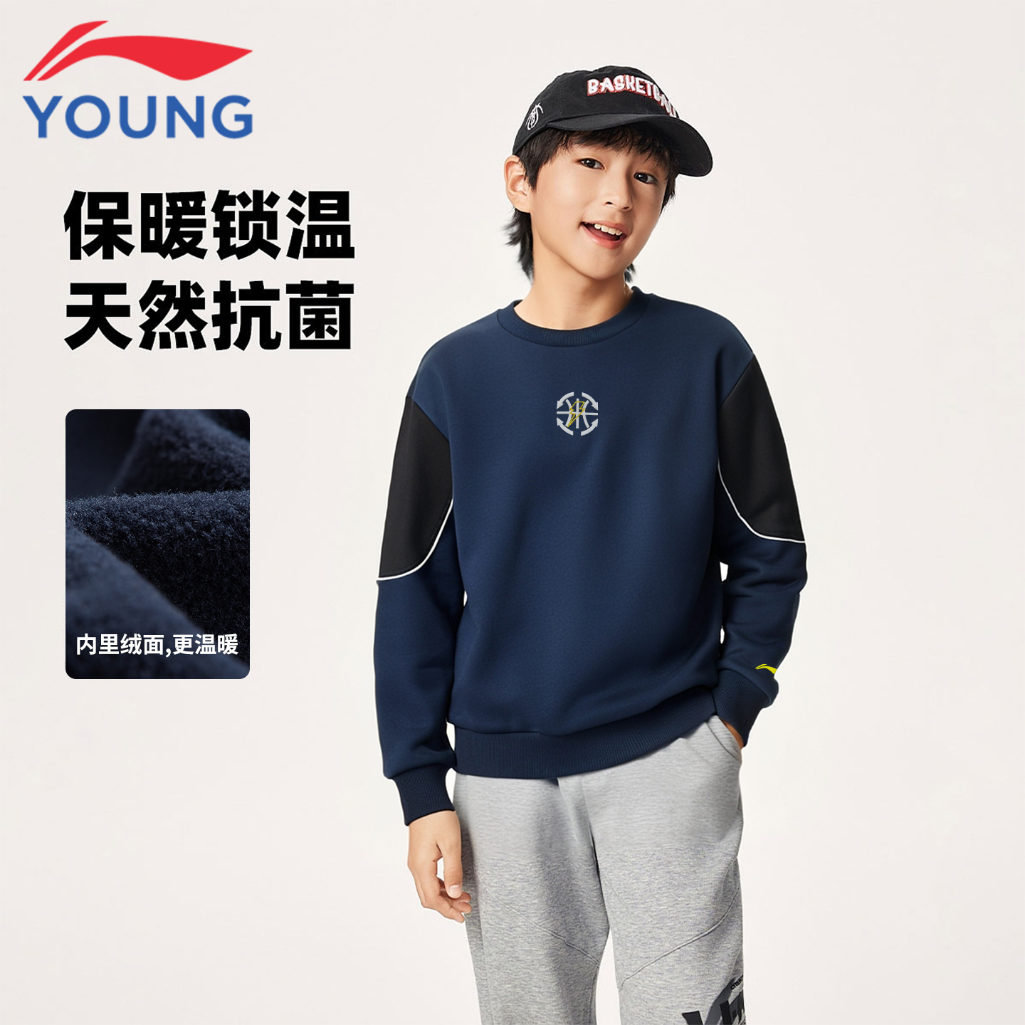 李宁儿童加绒卫衣男童2025秋季新款青少年保暖圆领套头运动服上衣