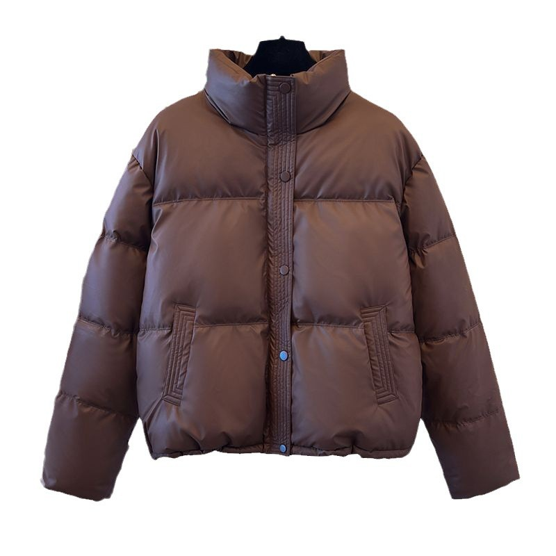 小羊皮新短款免洗pu皮羽绒棉衣女精品冬季加厚面包服小个子袄外套