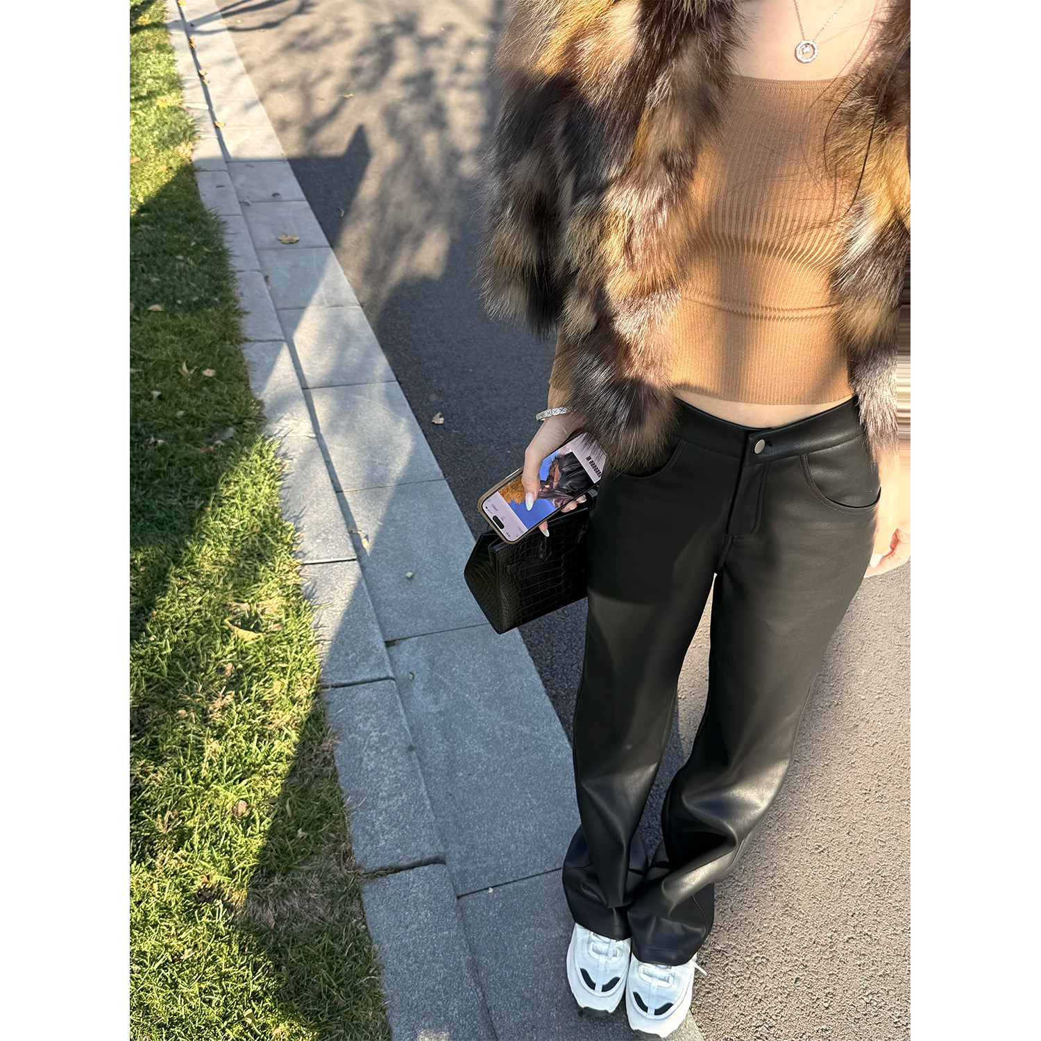 现货 viola【封神皮裤】好看疯了版型无敌nb蛋白pu加绒皮裤显瘦