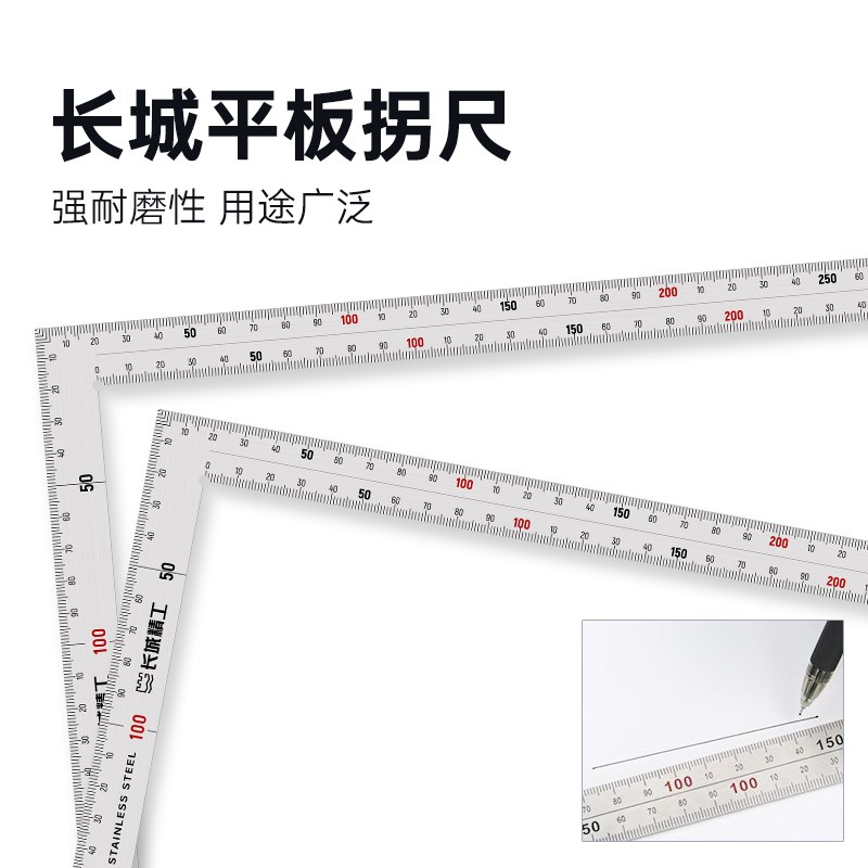 长城精工角尺精度90度木工加厚大号不锈钢直角尺250*500mm拐尺