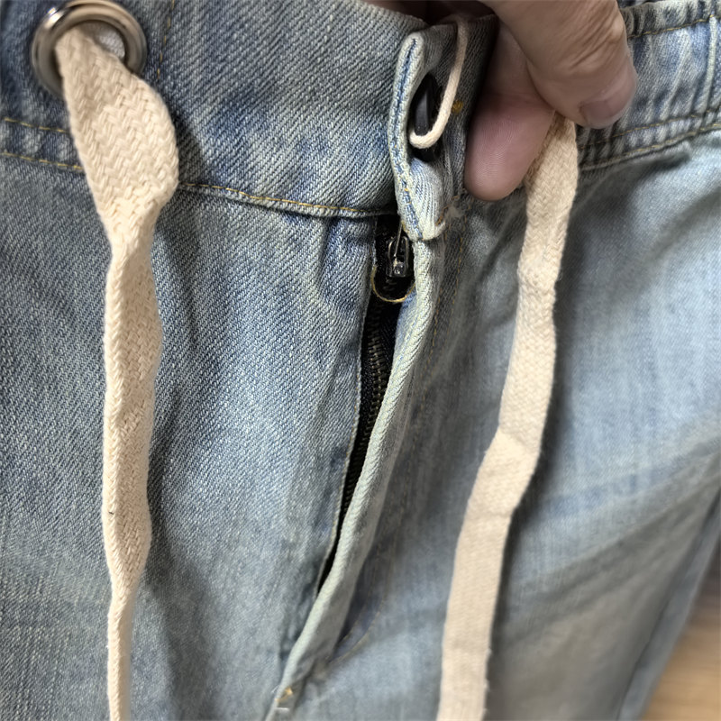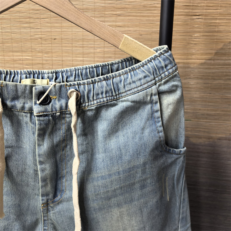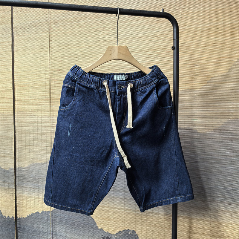 25D3C3美式高街复古牛仔短裤男女夏季五分裤松紧腰休闲宽松直筒裤