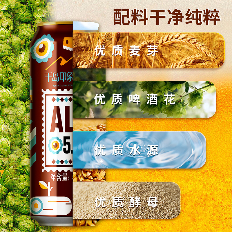 千岛印象ALE精酿啤酒500ml*12罐装啤酒浑浊夏日饮品泡沫箱送酒杯