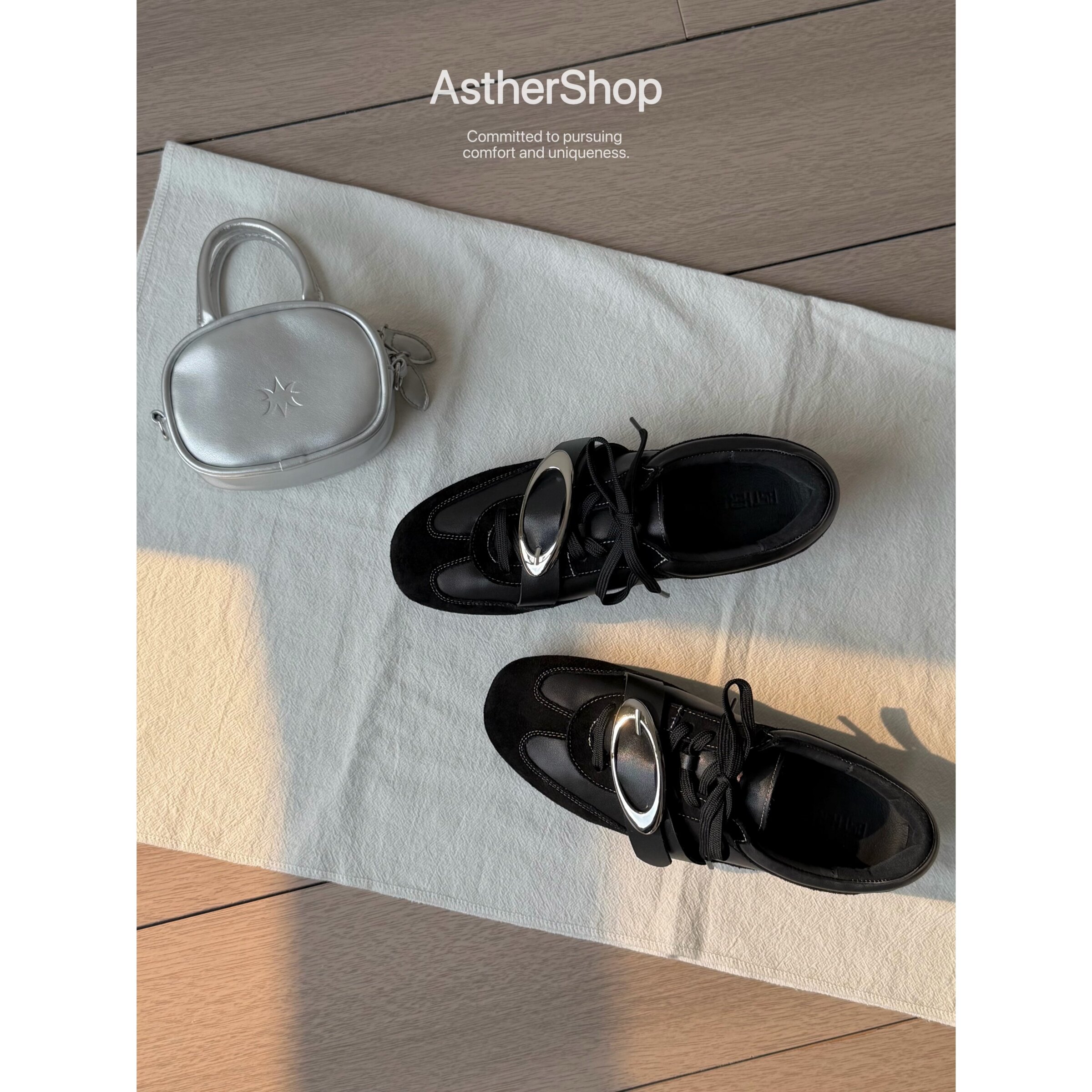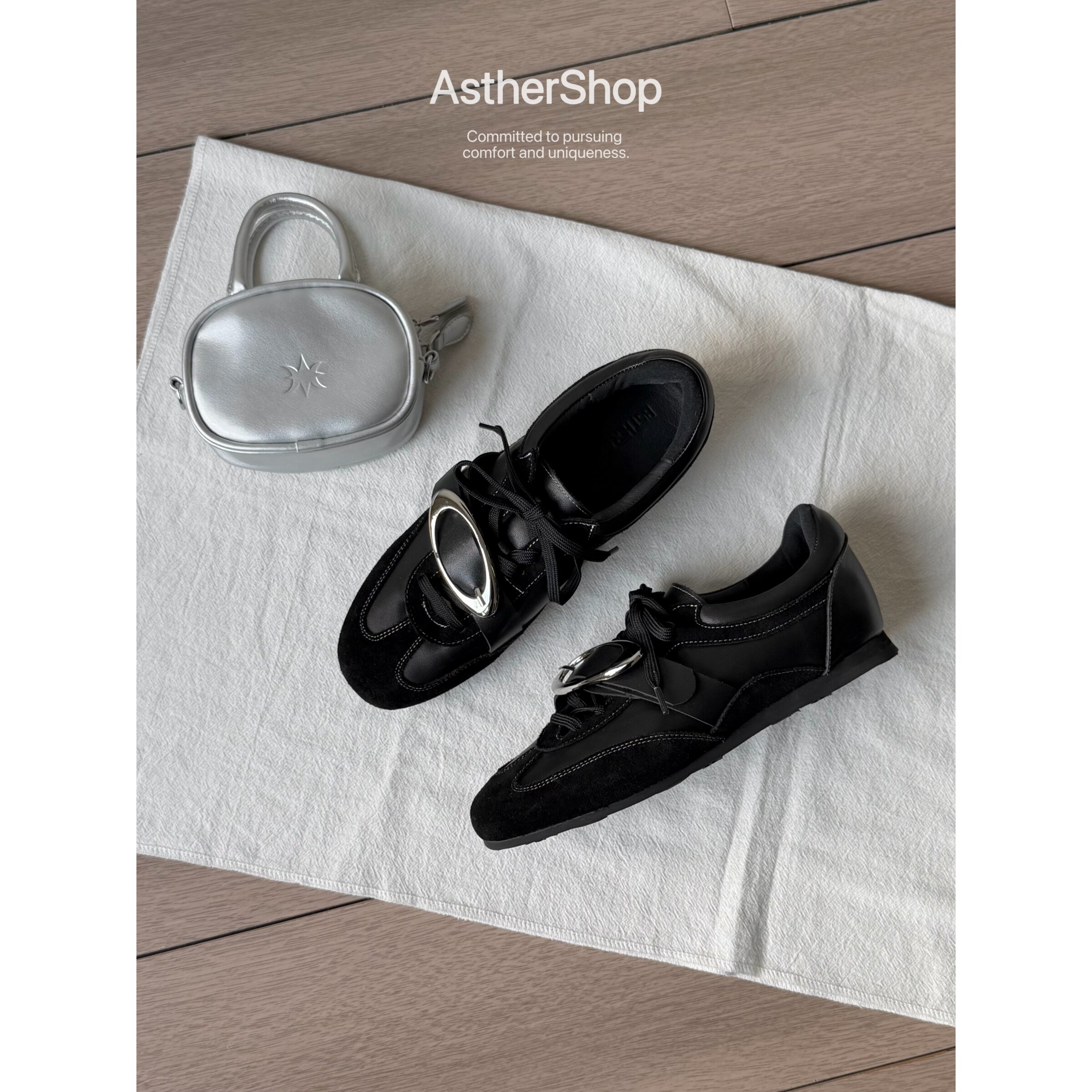 Asthershop原创 金属装饰德训鞋 圆头平底真皮单鞋舒适简约皮鞋女