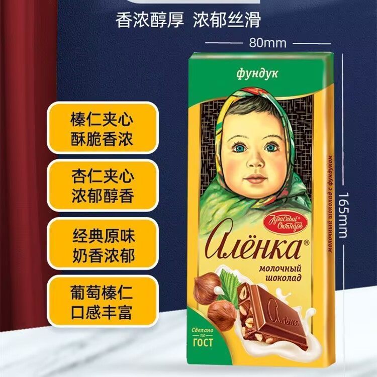 原装进口俄罗斯大头娃娃巧克力纯可可脂榛子杏仁牛奶原味特产零食