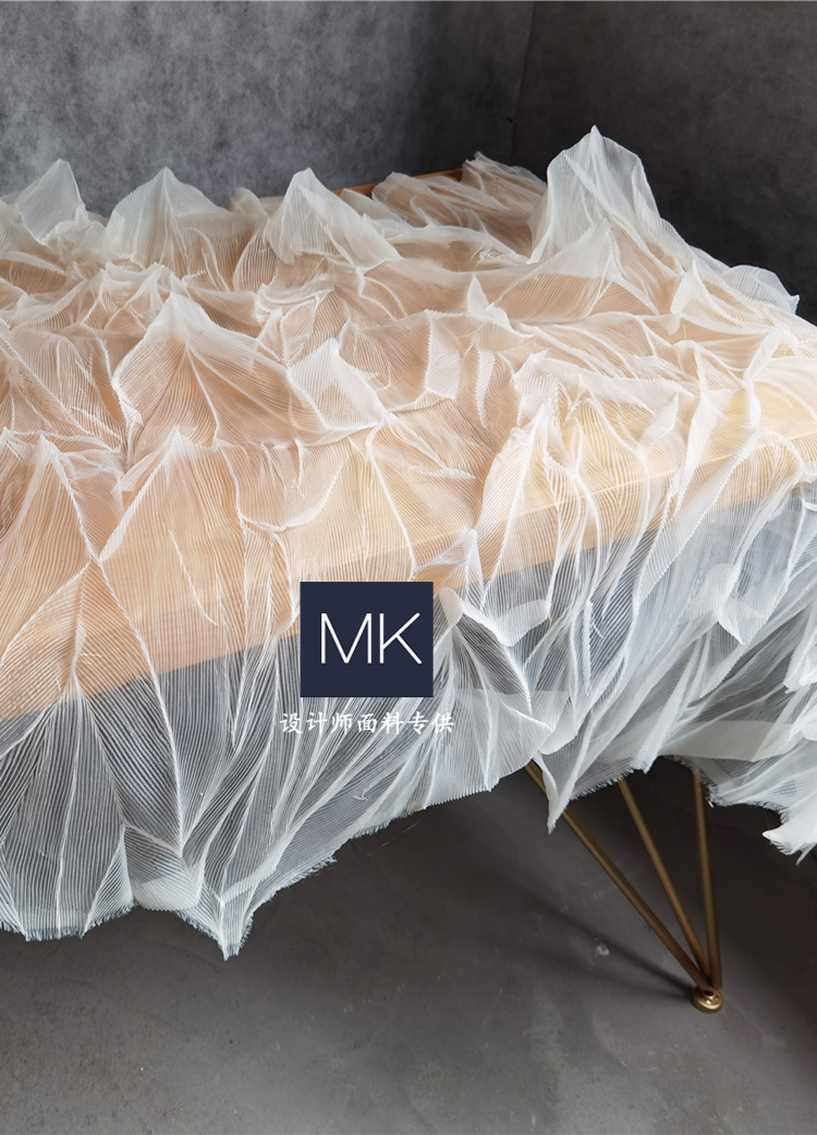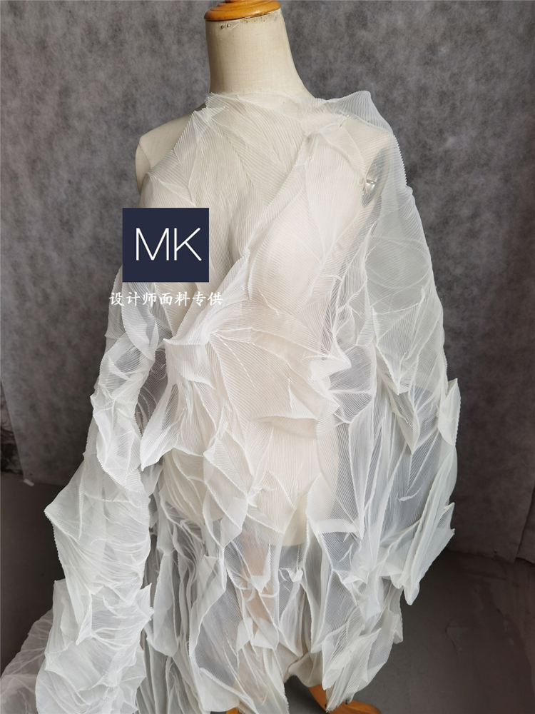 高端褶皱布三宅一生云雾纱白肌理表面礼服衣裙进口设计师时装面料