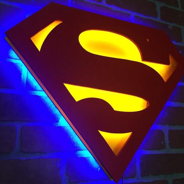 爆款正义联盟超人LED夜灯发光壁灯家饰灯超级英雄标志灯