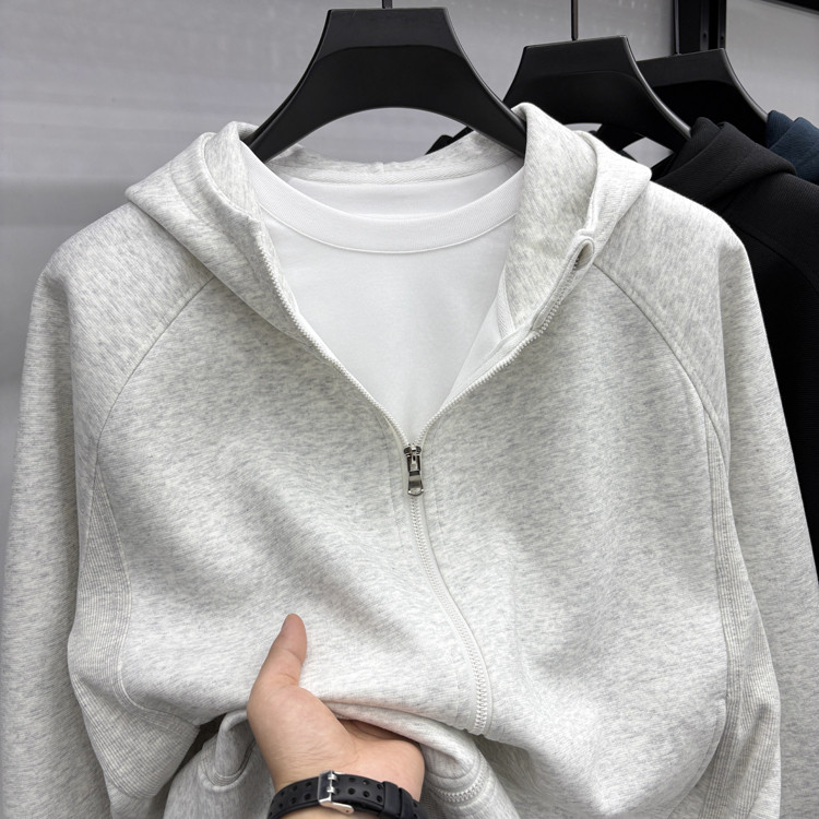 春秋季男士连帽含棉拉链长袖卫衣内搭上衣中青年休闲外套打底衫男