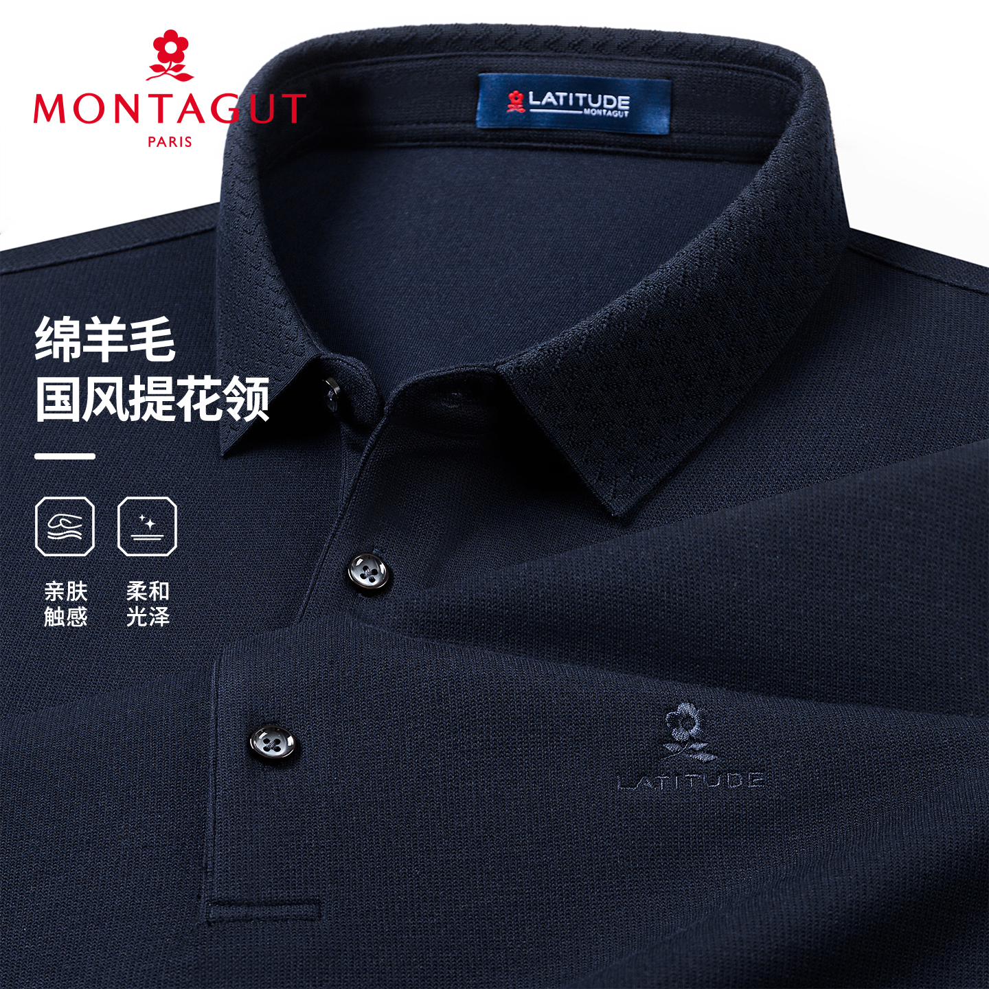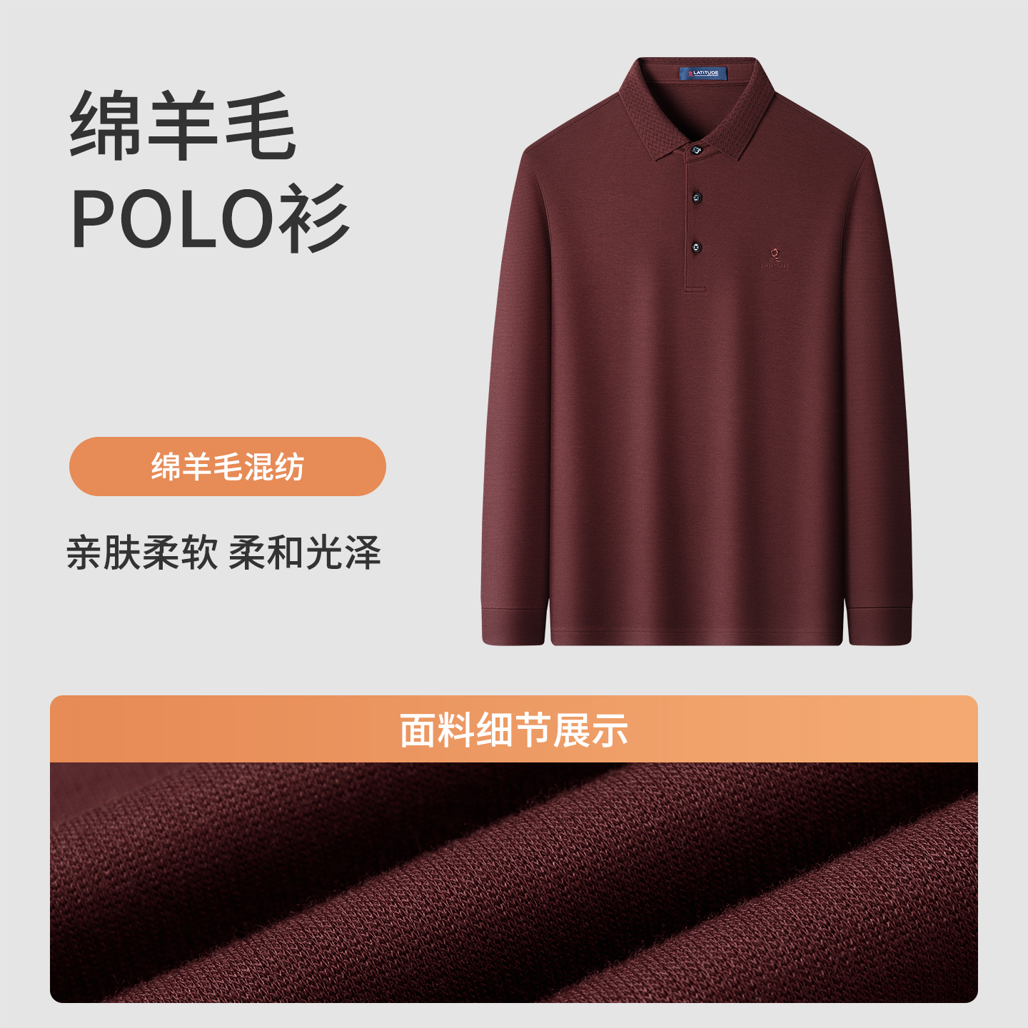 [双面丝光羊毛]梦特娇男士Polo衫长袖25秋季翻领商务中年T恤亲肤J
