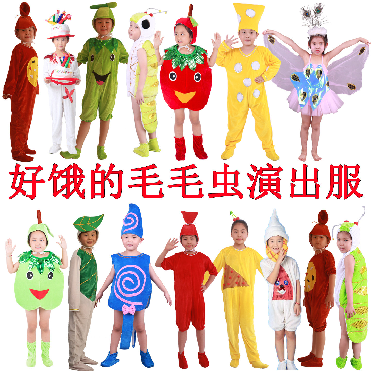 儿童好饿的毛毛虫绘本表演服幼儿园奶酪苹果火腿香肠蝴蝶演出服装