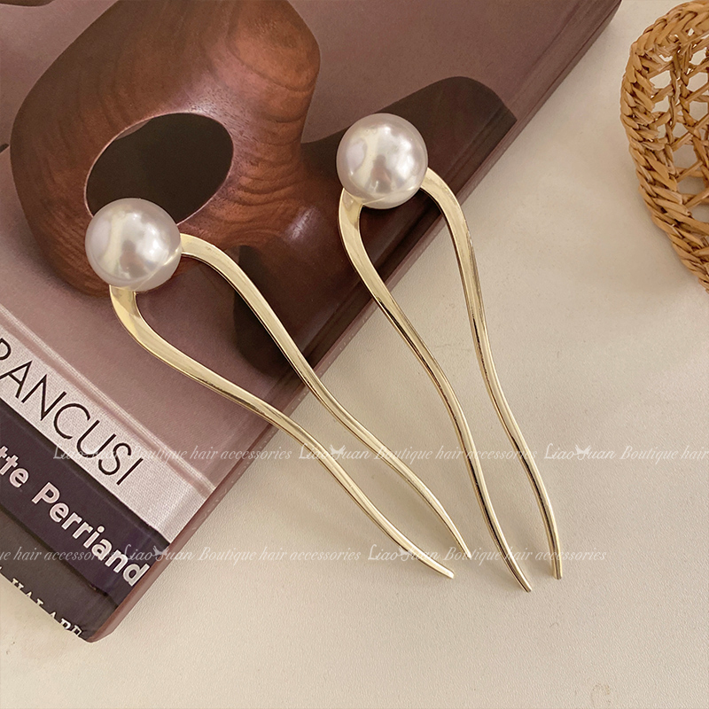 高级感珍珠u型发簪女气质发钗簪子2025新款新中式丸子头盘发头饰