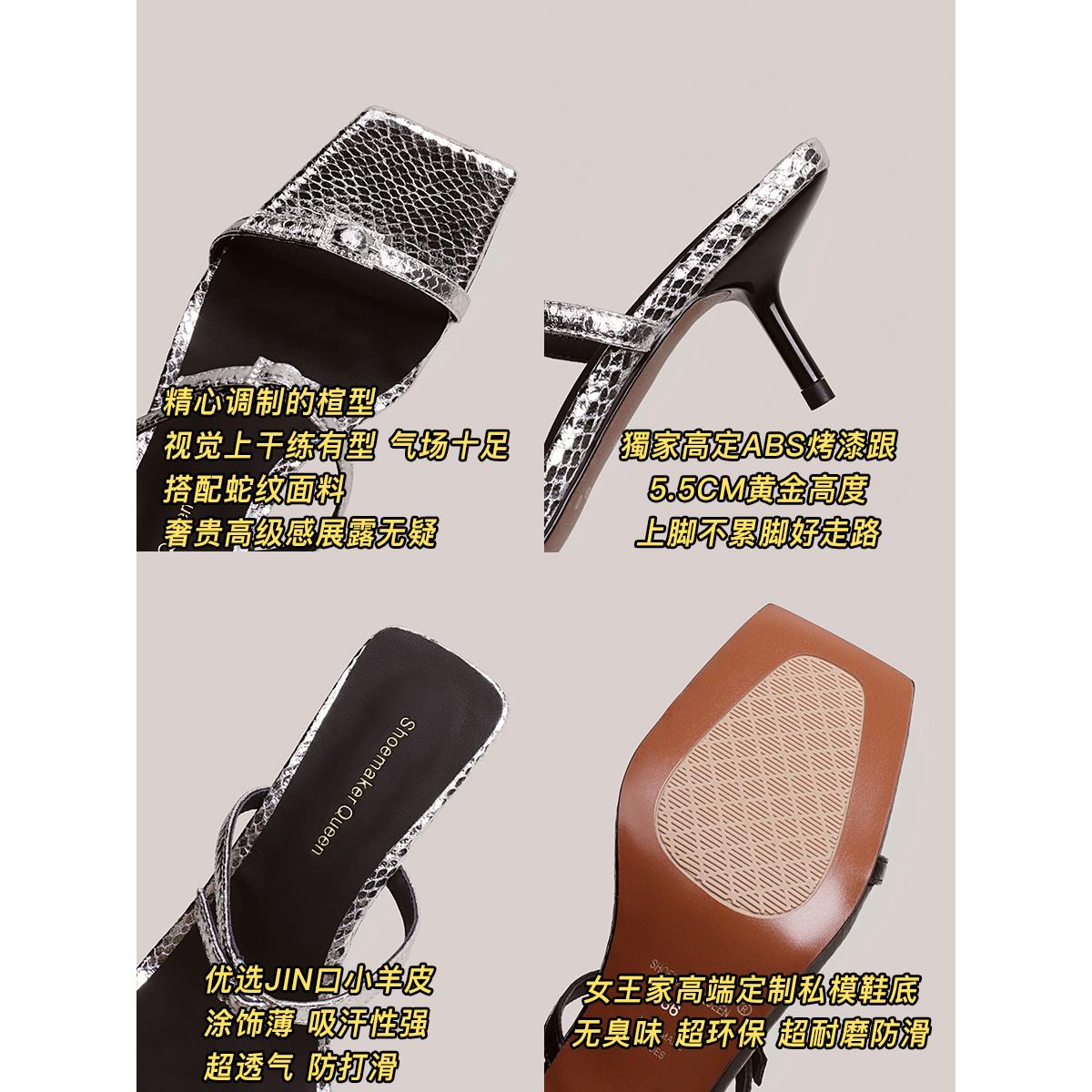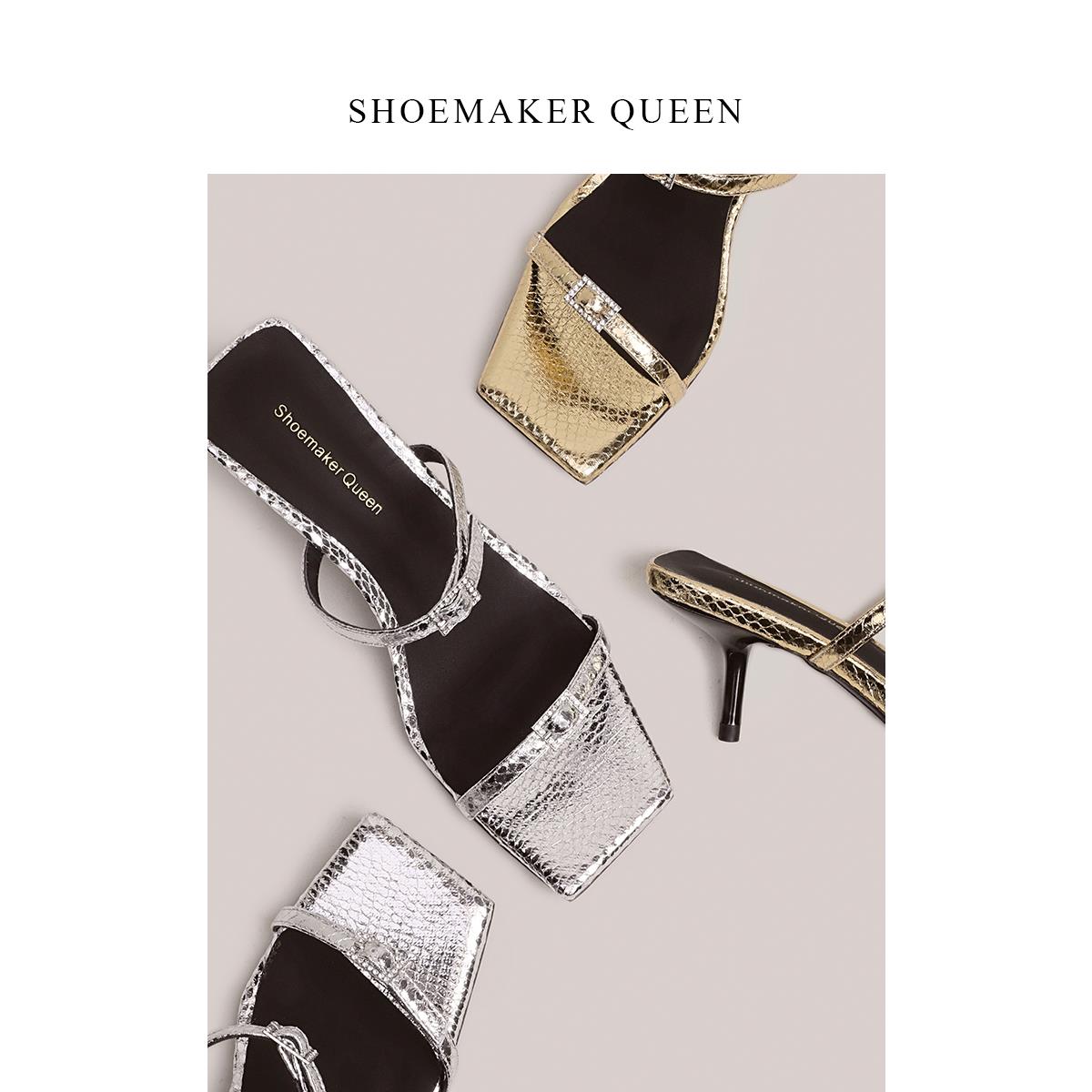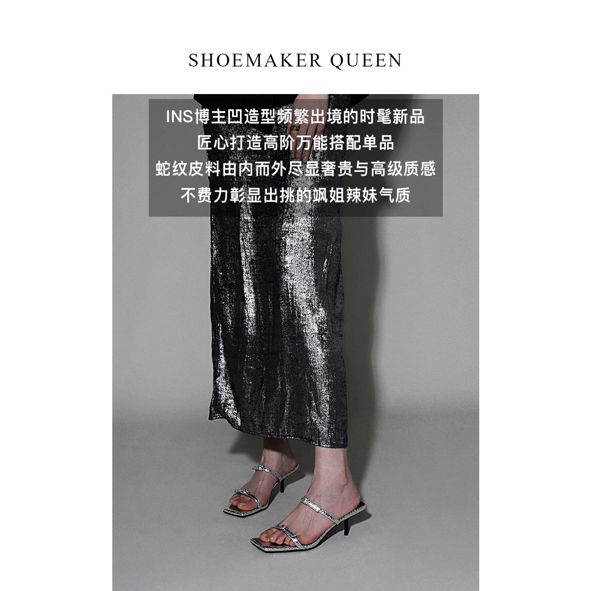 【鞋匠女王×高级定制等级】莱茵石方趾中跟绑带凉鞋女式细高跟鞋
