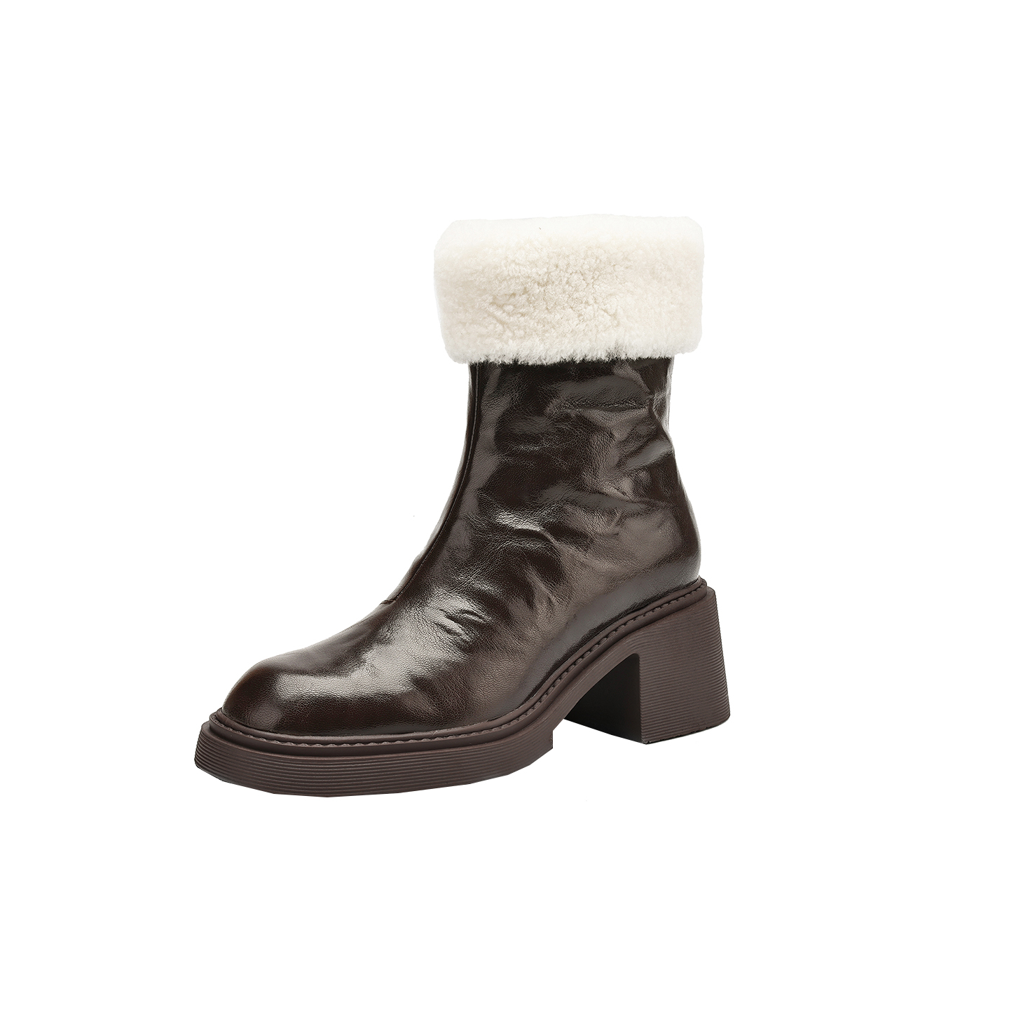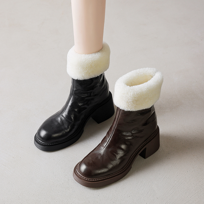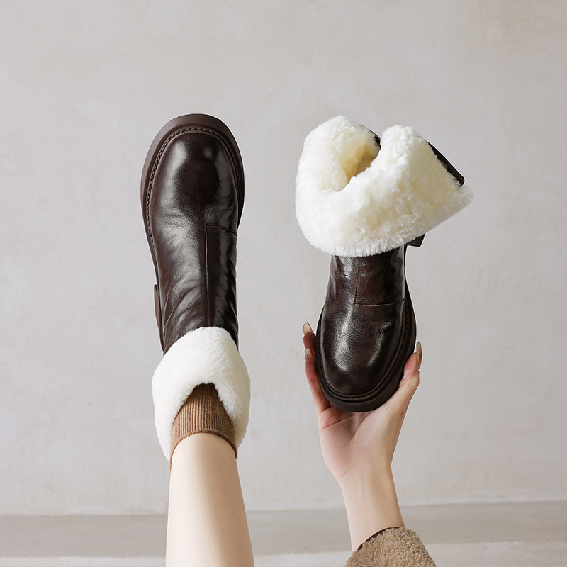 6cm冬季雪地靴女2025新款加绒加厚大棉鞋真皮增高粗跟高跟短靴子