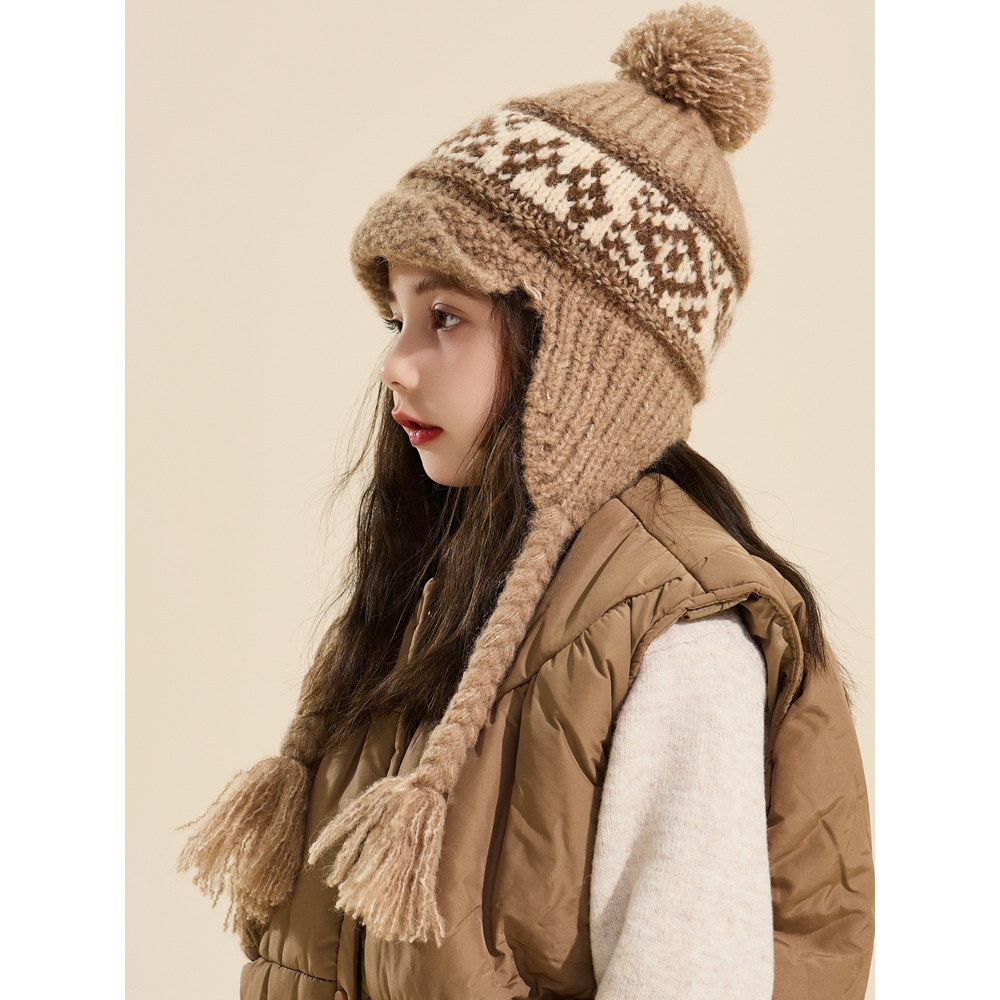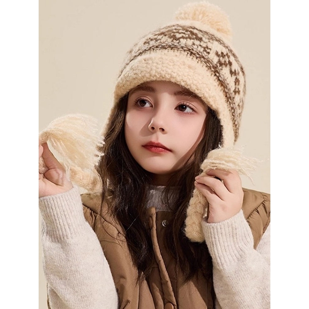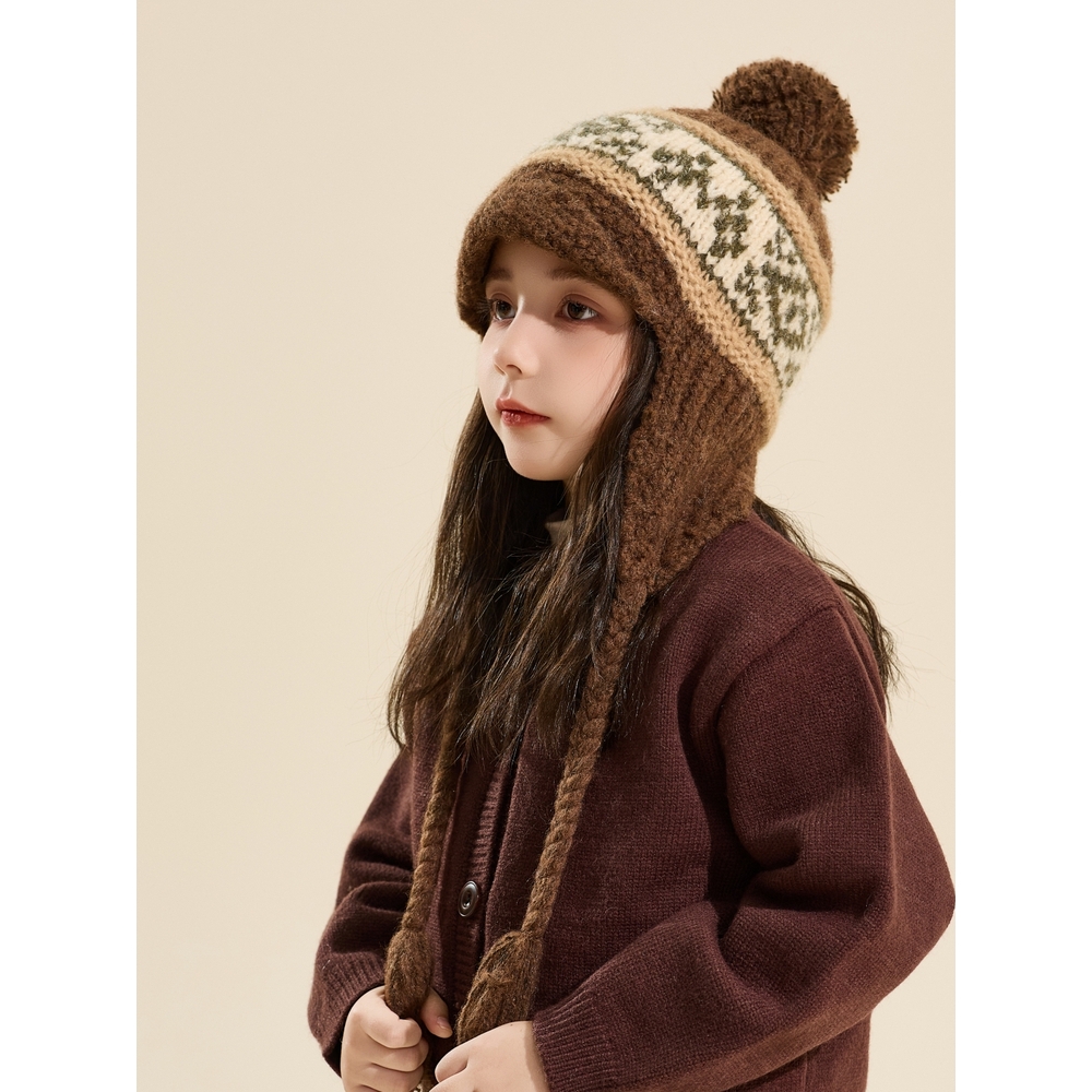 儿童毛线帽子女秋冬可爱流苏针织帽男孩幼儿园宝宝保暖护耳套头帽
