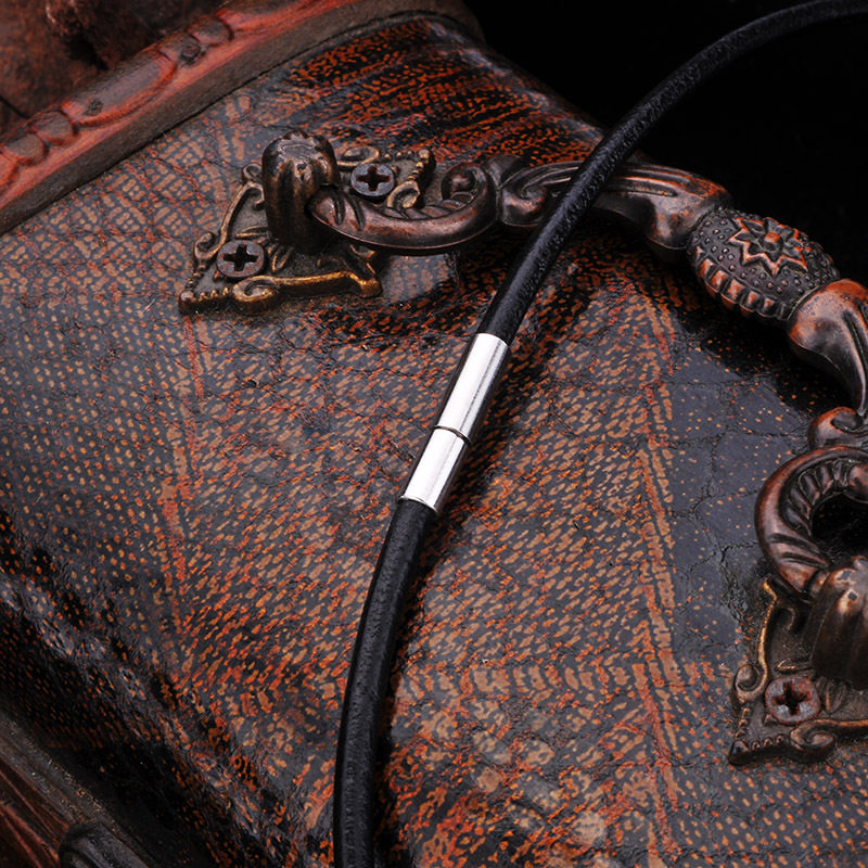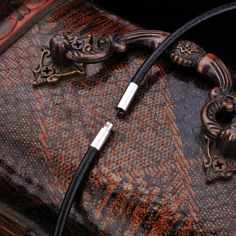 皮项链不锈钢扣黑色牛皮绳首饰品
