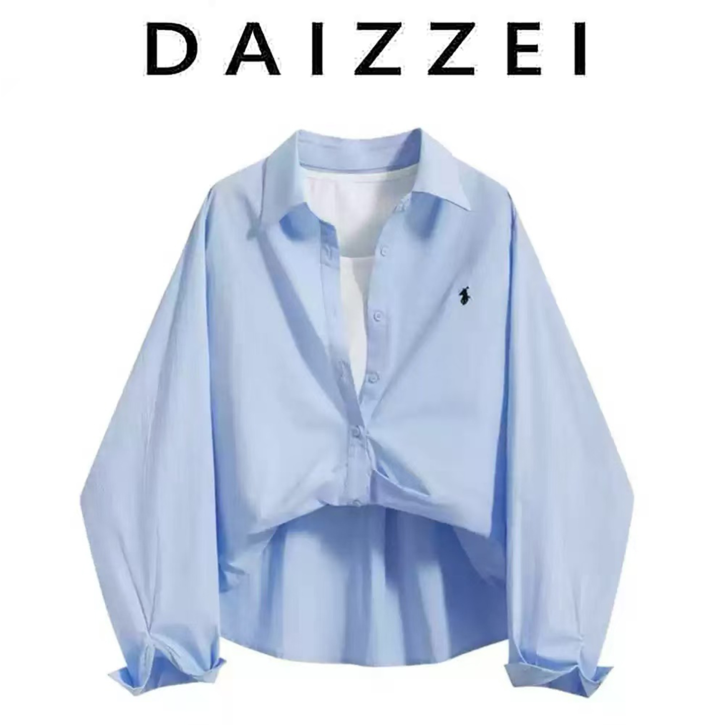 DAIZZEI~法式蓝色假两件长袖衬衫女2025年新款设计感小众别致上衣