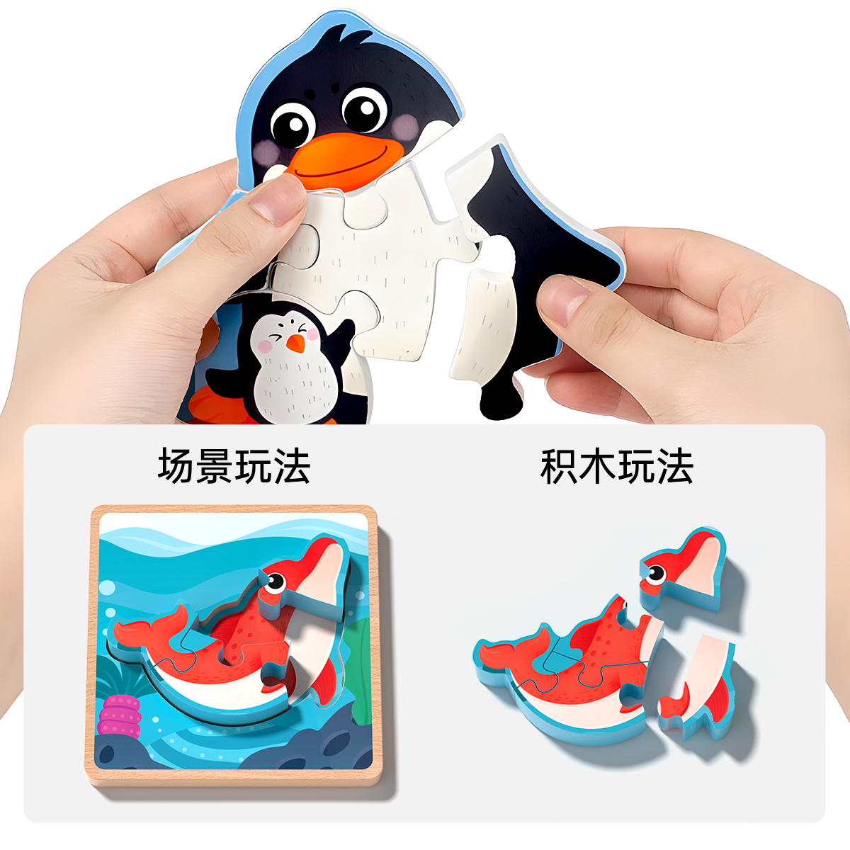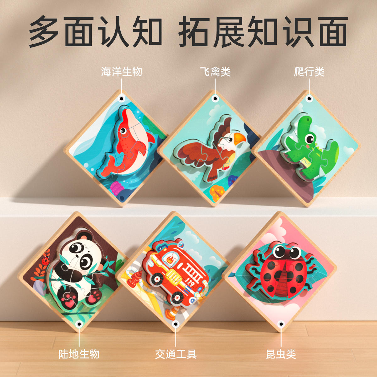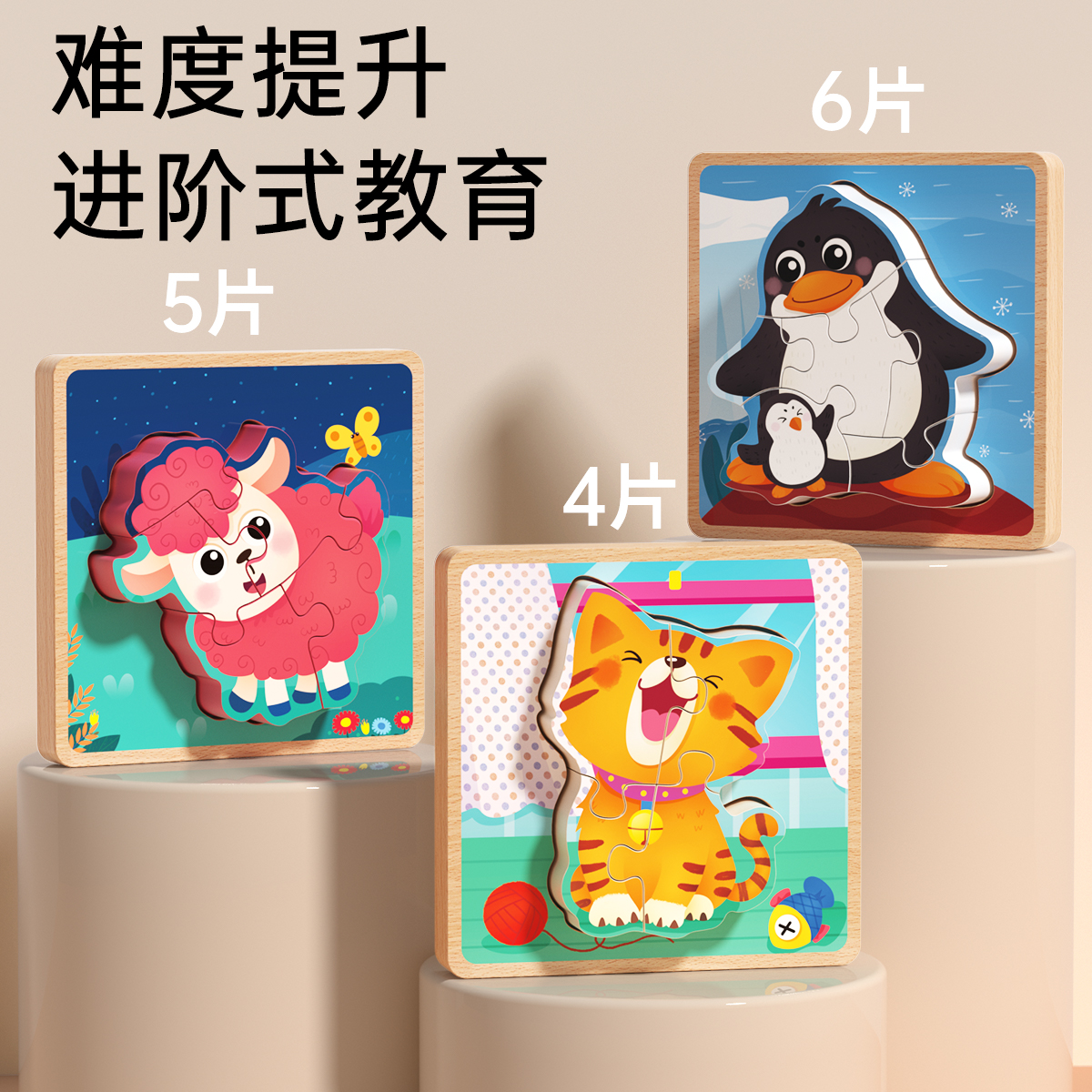 儿童大块立体拼图木质拼板2积木3-6岁4男孩1女孩宝宝益智早教玩具