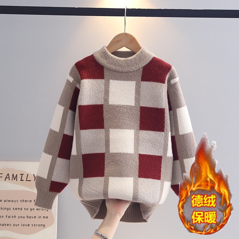 男童2025毛衣新款格子儿童中大童洋气圆领套头针织衫秋冬打底宝宝
