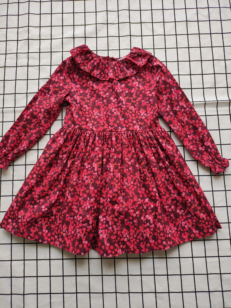 法3-12岁女童春季新款繁花翻领甜美荷叶边百褶纯棉长袖连衣裙