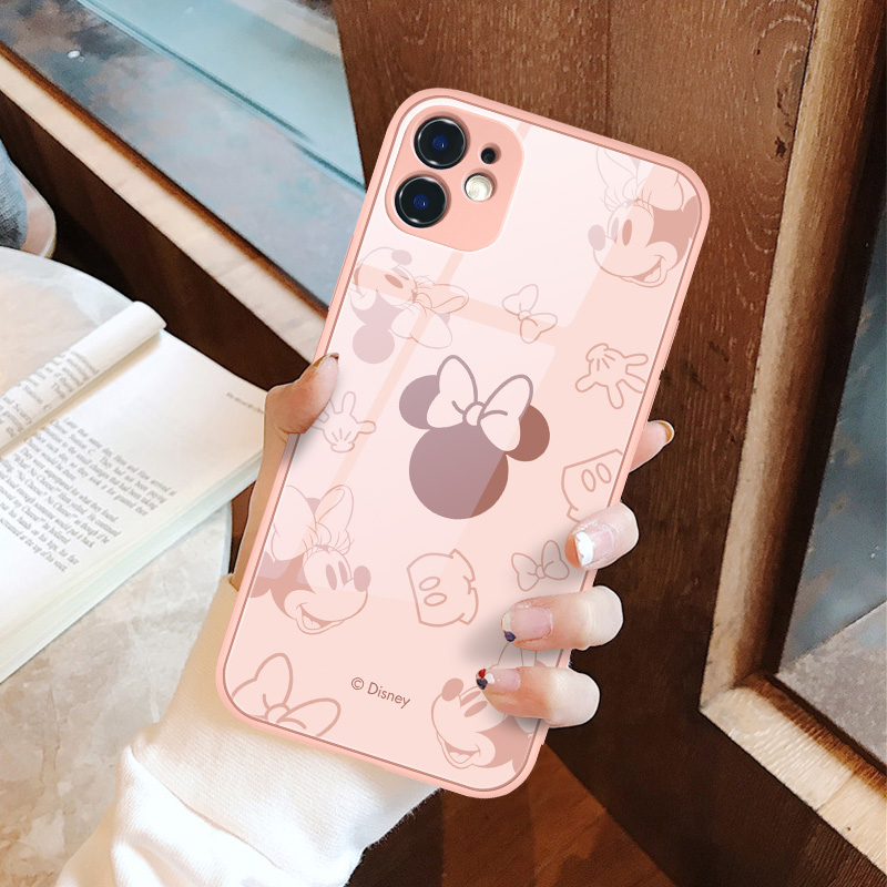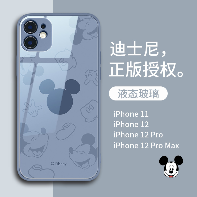 适用苹果14手机壳iPhone13迪士尼11玻璃12promax高级感xr/xsmax米奇17网红8plus情侣款15pro新款mini潮16套