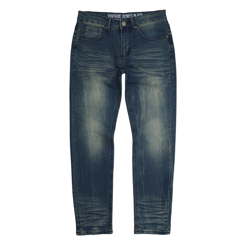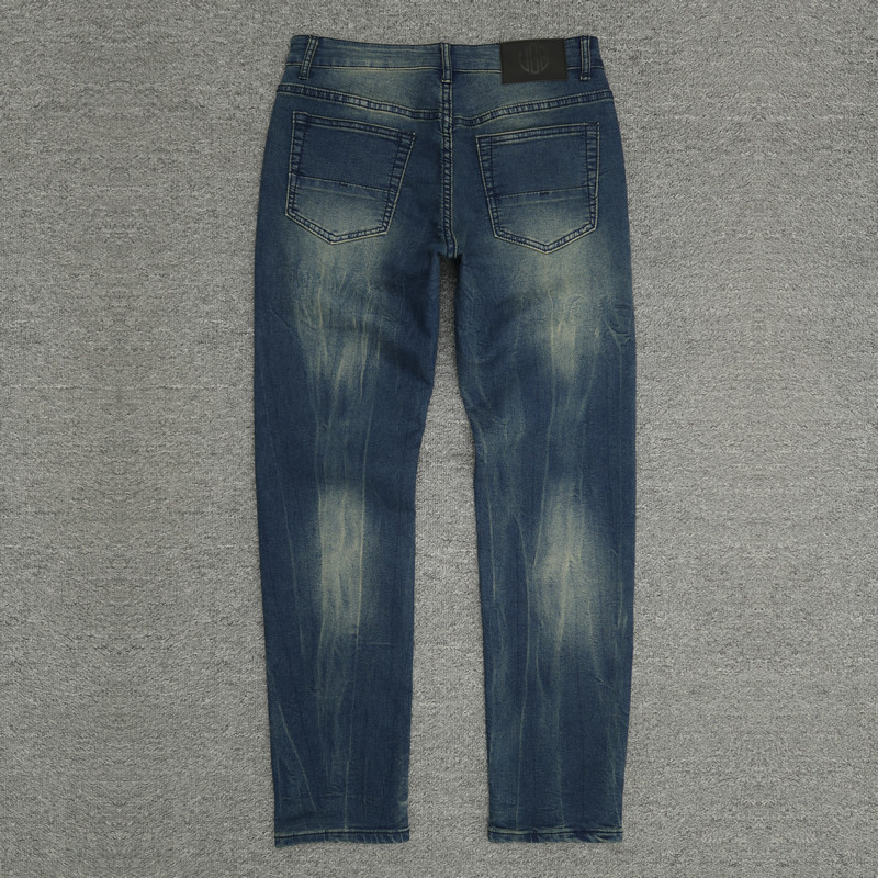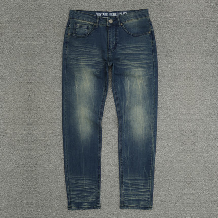 欧美简约外贸针织牛仔裤男中腰合体小直筒柔软棉弹水洗磨白做旧秋