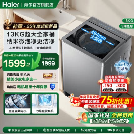 【补贴15%】海尔波轮洗衣机13KG大容量家用57E全自动直驱变频27A
