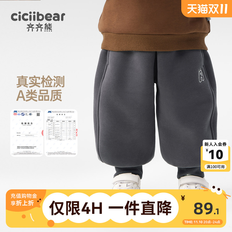齐齐熊宝宝裤子冬款男童加绒卫裤