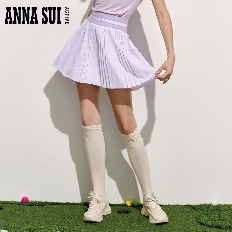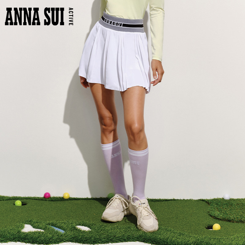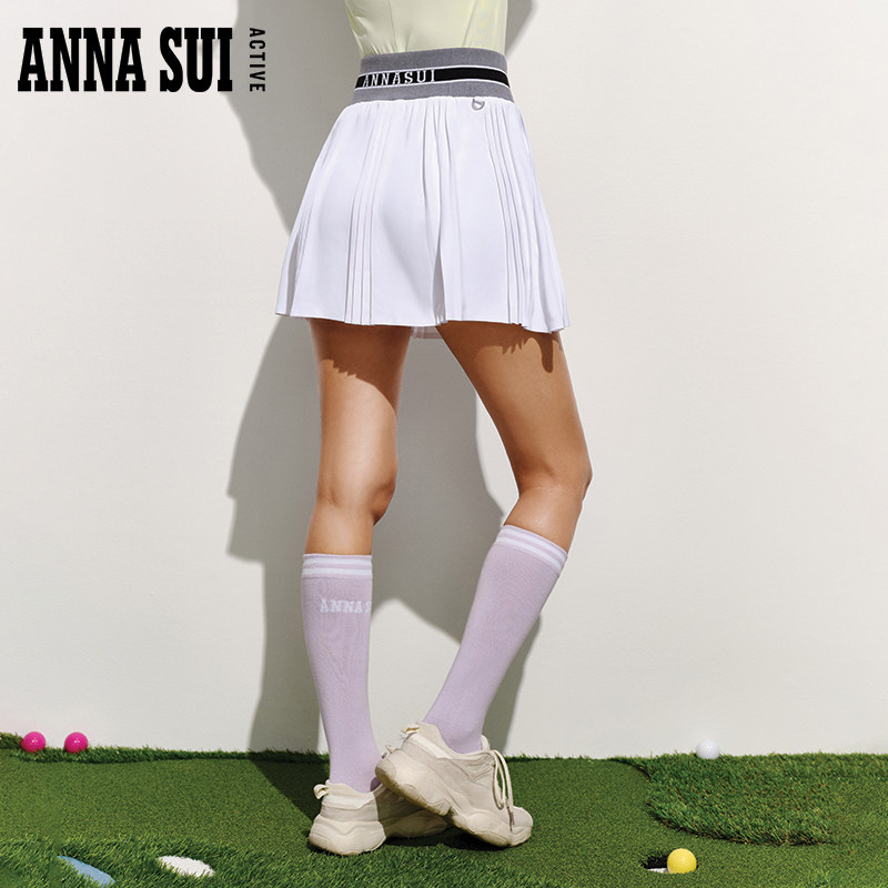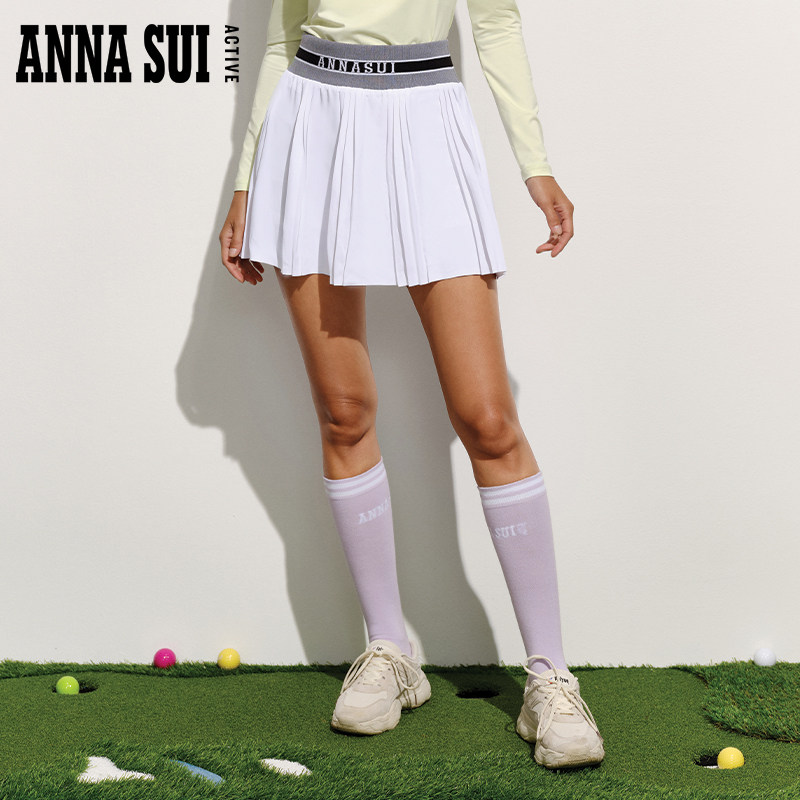 ANNA SUI安娜苏运动 俱乐部系列拼接A字高尔夫高腰百褶裙半身短裙