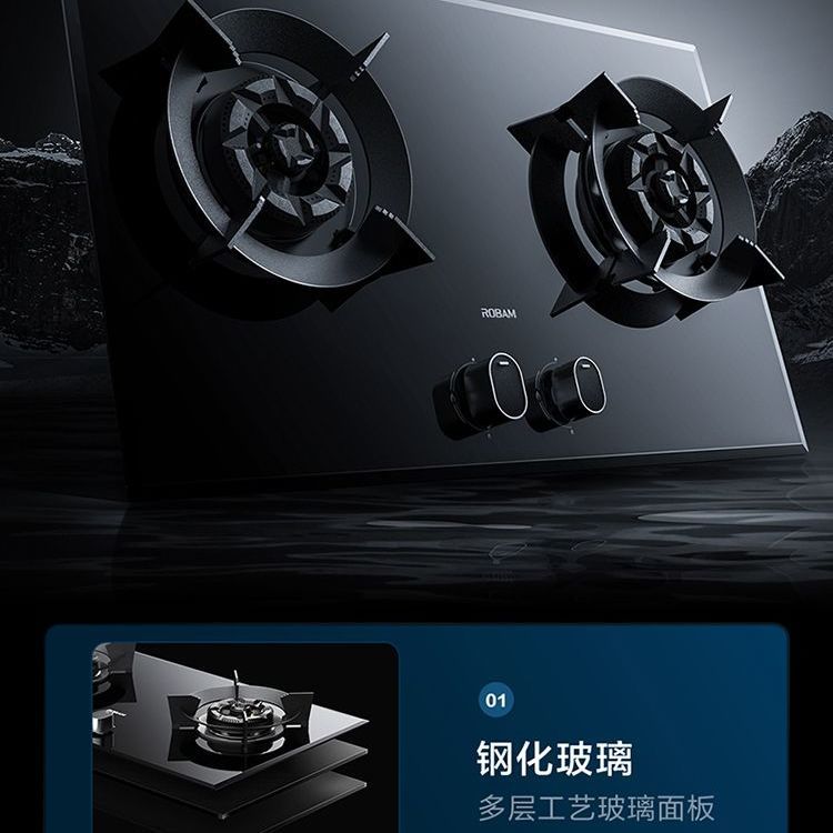 老板57B0大火力嵌入式家用燃气灶钢化玻璃面板双灶头
