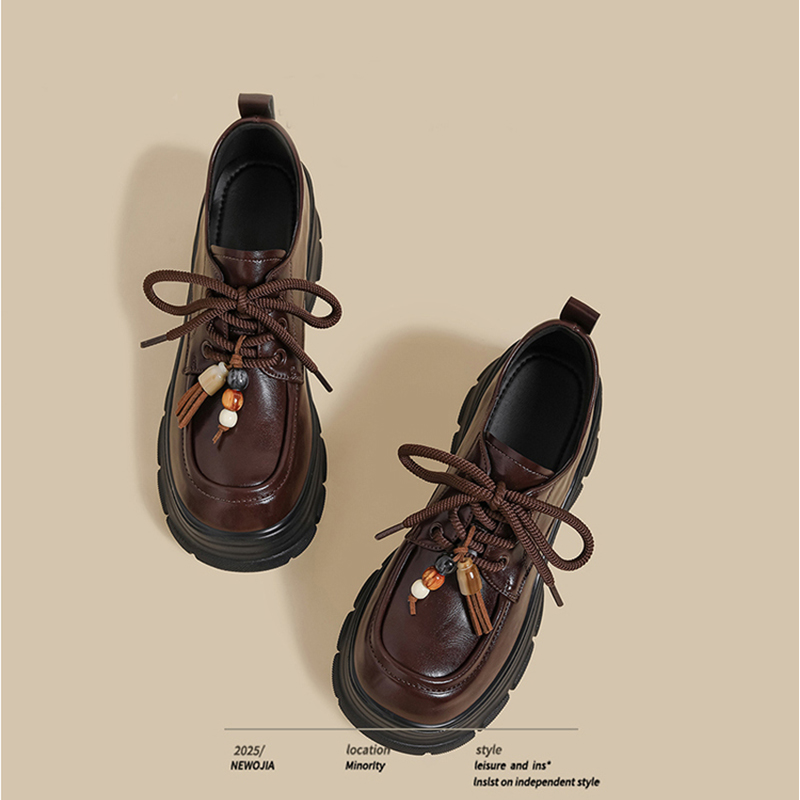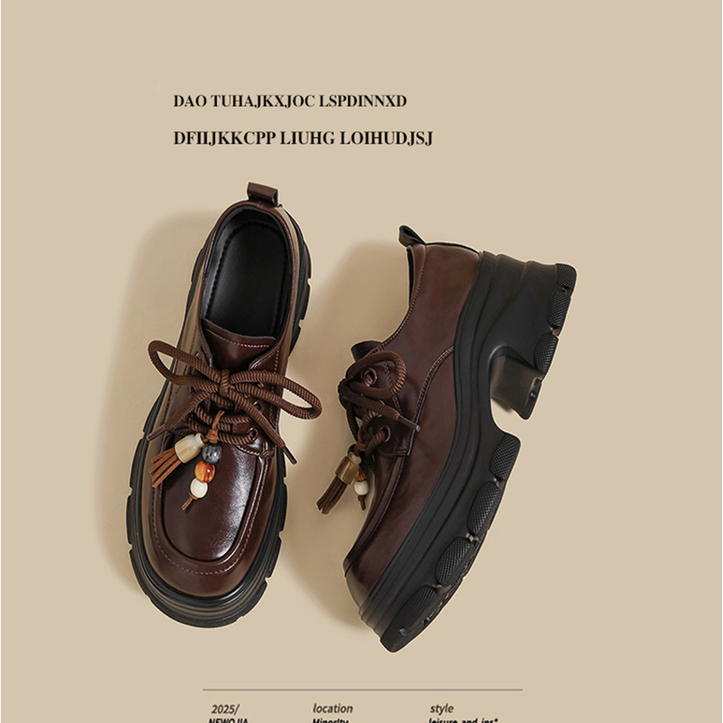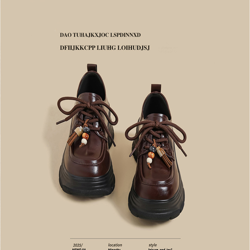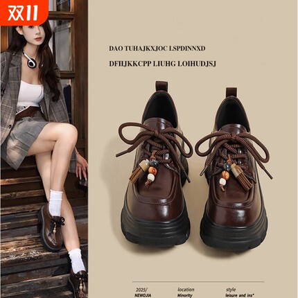 厚底增高跟英伦风小皮鞋女鞋子2025新款秋季棕色乐福鞋小个子单鞋