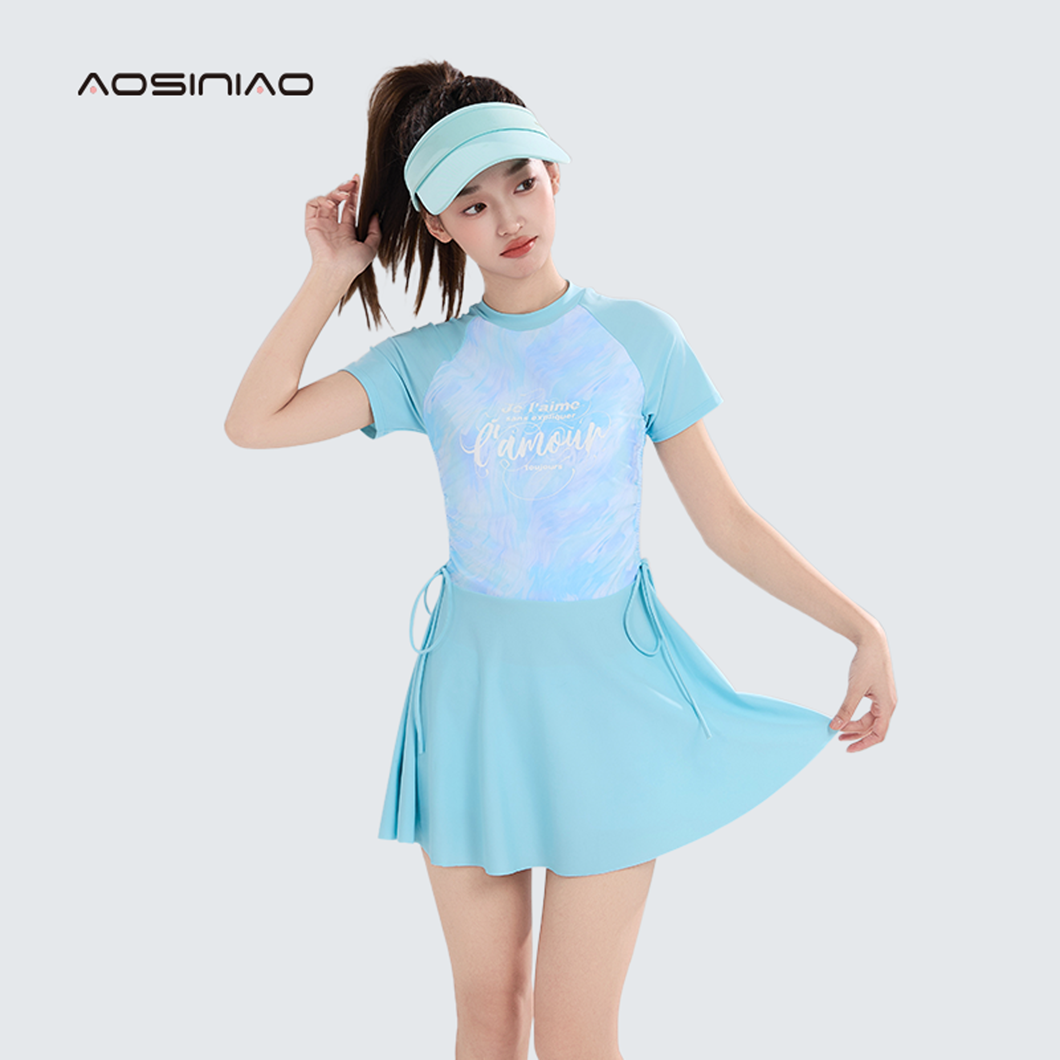 儿童连体泳衣中大童高级感游泳衣裙式女童初中生运动泳装女孩学生