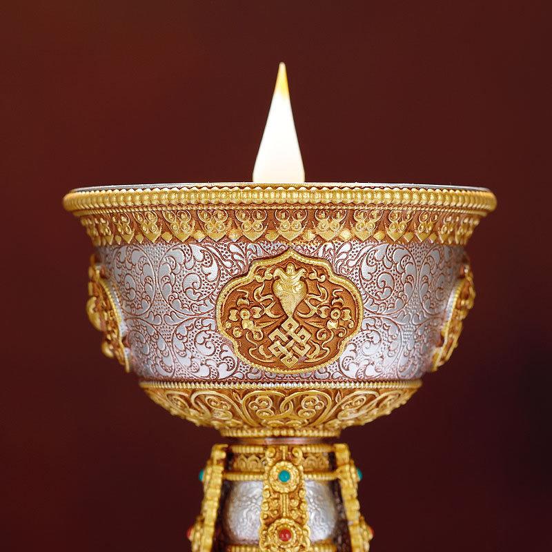 电子酥油灯酥油充电莲花底座烛台灯仿真火焰长明灯LED蜡烛台灯盏