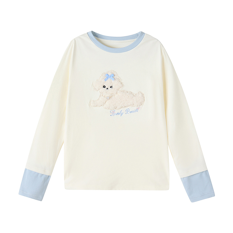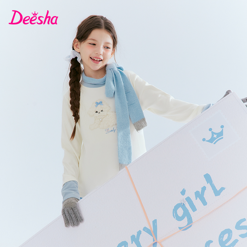 笛莎童装女童长袖T恤秋冬新款儿童女孩中大童绒绒打底衫百搭白色