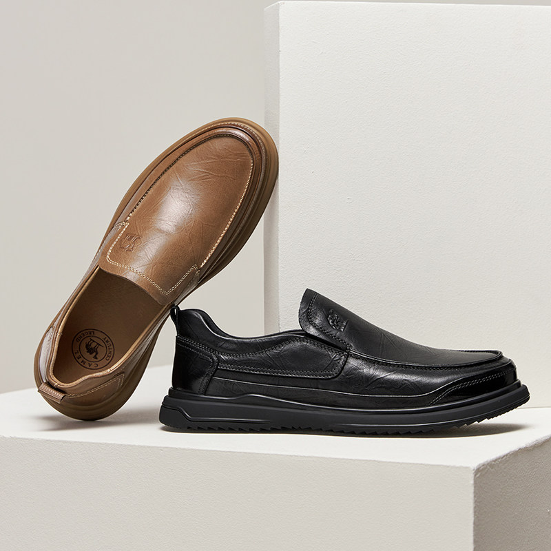 骆驼男鞋2025冬季新款舒软真皮套脚舒适经典商务休闲爸爸乐福皮鞋