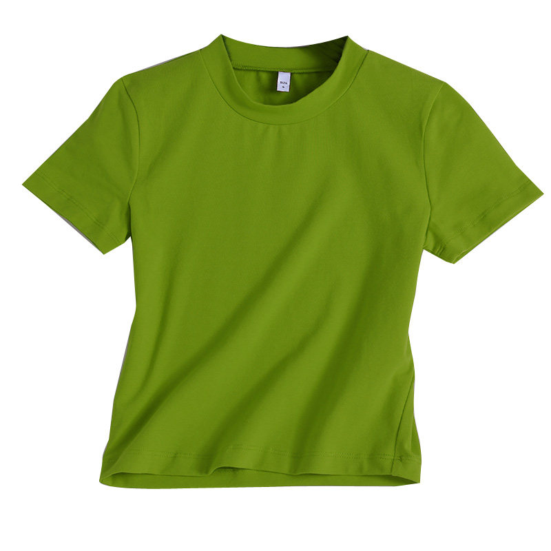 牛油果绿短袖短款露脐半高领弹力