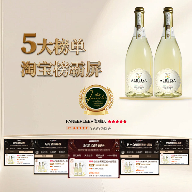 山竹冰茉莉意大利莫斯卡托起泡酒甜白葡萄酒气泡酒果酒送女生礼物