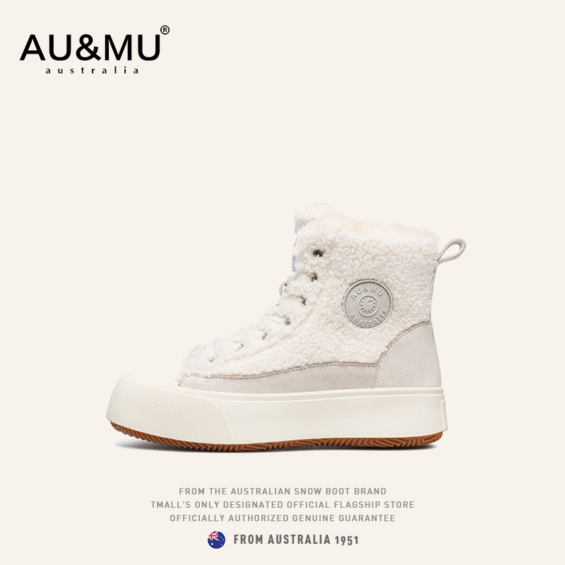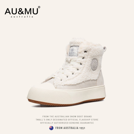AUMU翻毛短筒雪地靴 真羊皮毛一体 2025新款时尚绒加厚底大棉鞋女