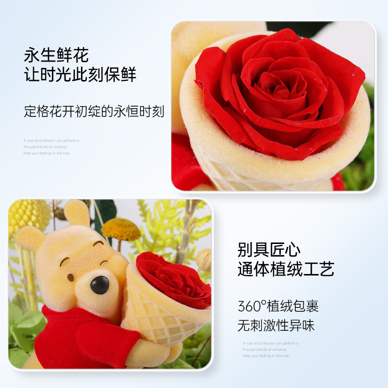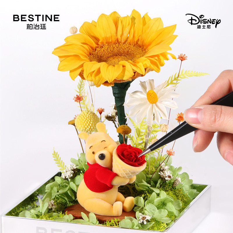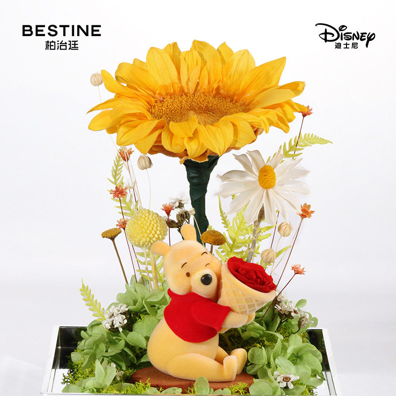 柏治廷迪士尼噗噗小熊向日葵永生花礼盒摆件太阳花教师节生日礼物