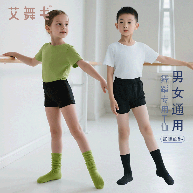 儿童舞蹈服上衣套装女童拉丁舞服装男童练功服长袖T恤裤子训练服