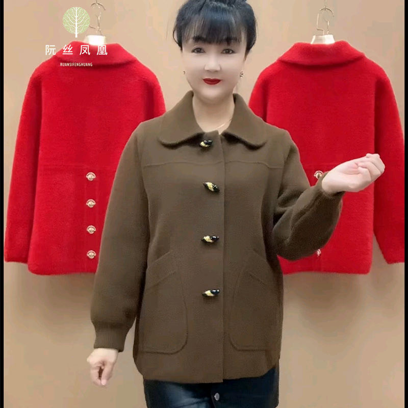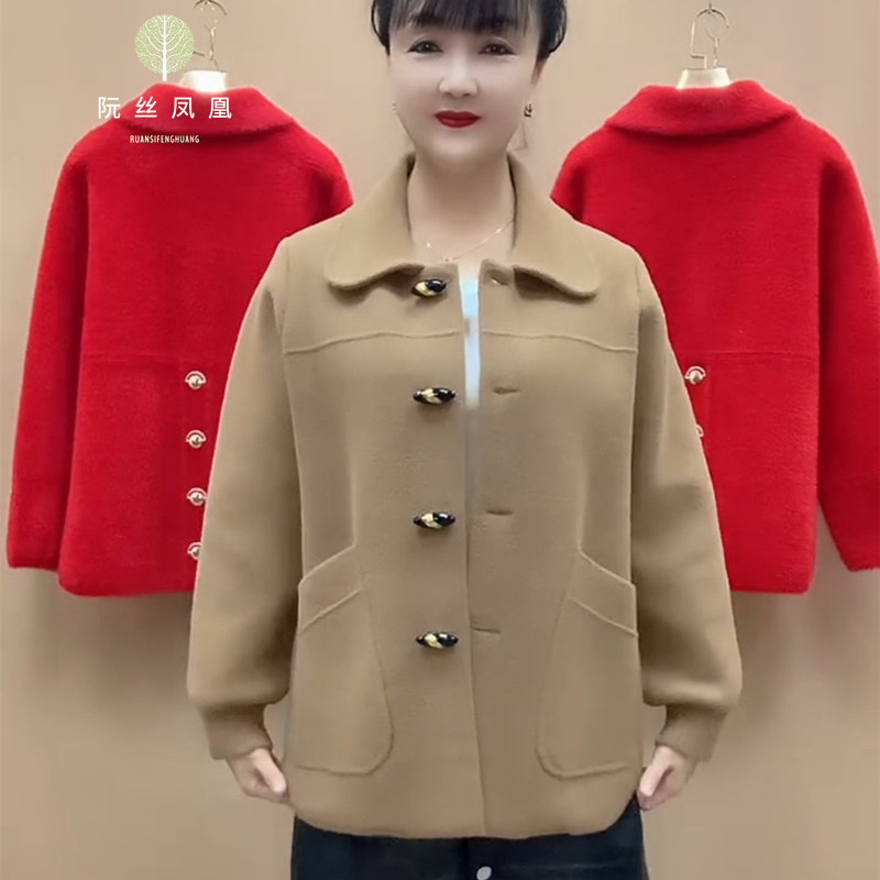 中年妈妈秋冬针织外套时尚休闲上衣2025新款春秋中长款呢子大衣女