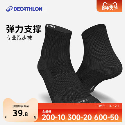 迪卡侬运动袜男女中筒袜短袜篮球秋季长袜健身马拉松跑步袜子OVA1