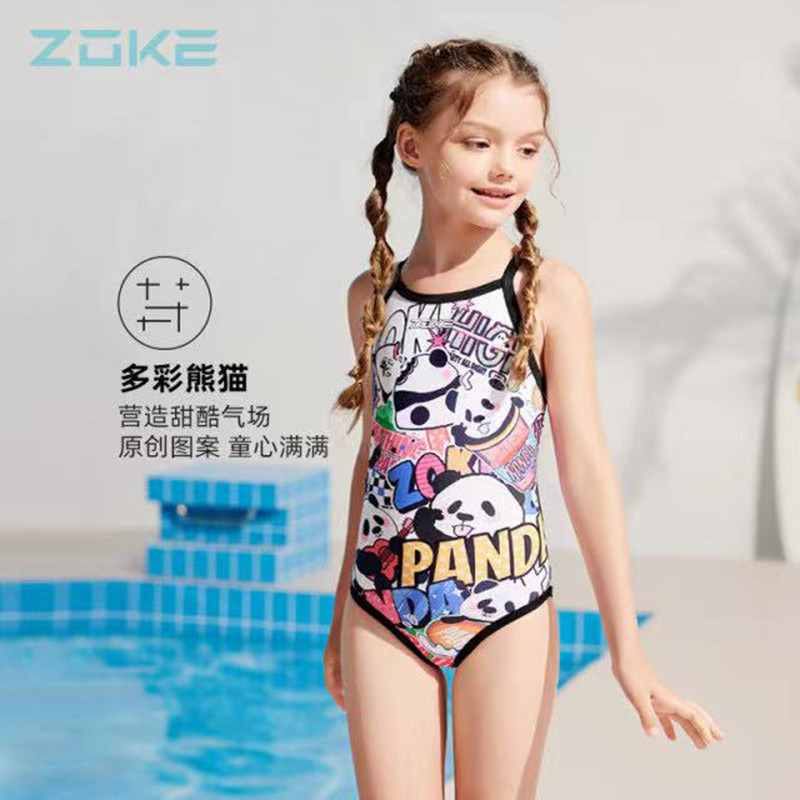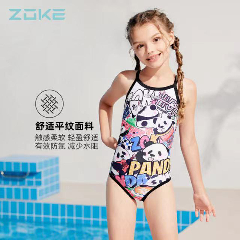 ZOKE洲克新款卡通动漫青少年游泳训练比赛女童连体三角泳衣包邮