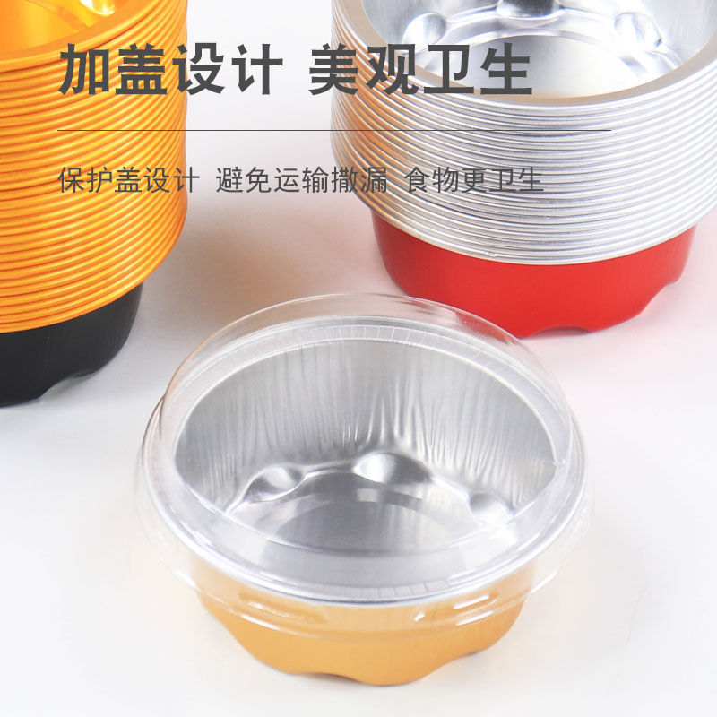 金色锡纸盒 一次性加厚50ml 打包盒榴莲盒圆形布丁杯蛋糕碗锡纸杯