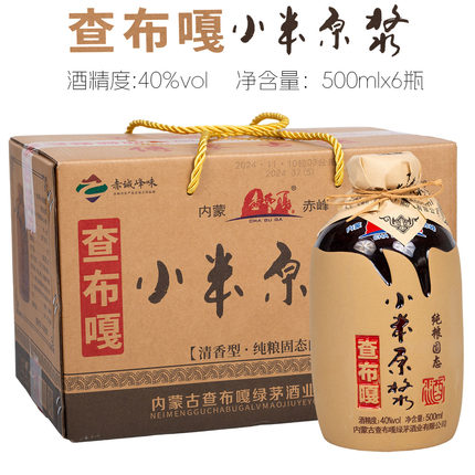 [原箱发货]查布嘎小米原浆40度6瓶装500ml内蒙古赤峰特产清香型