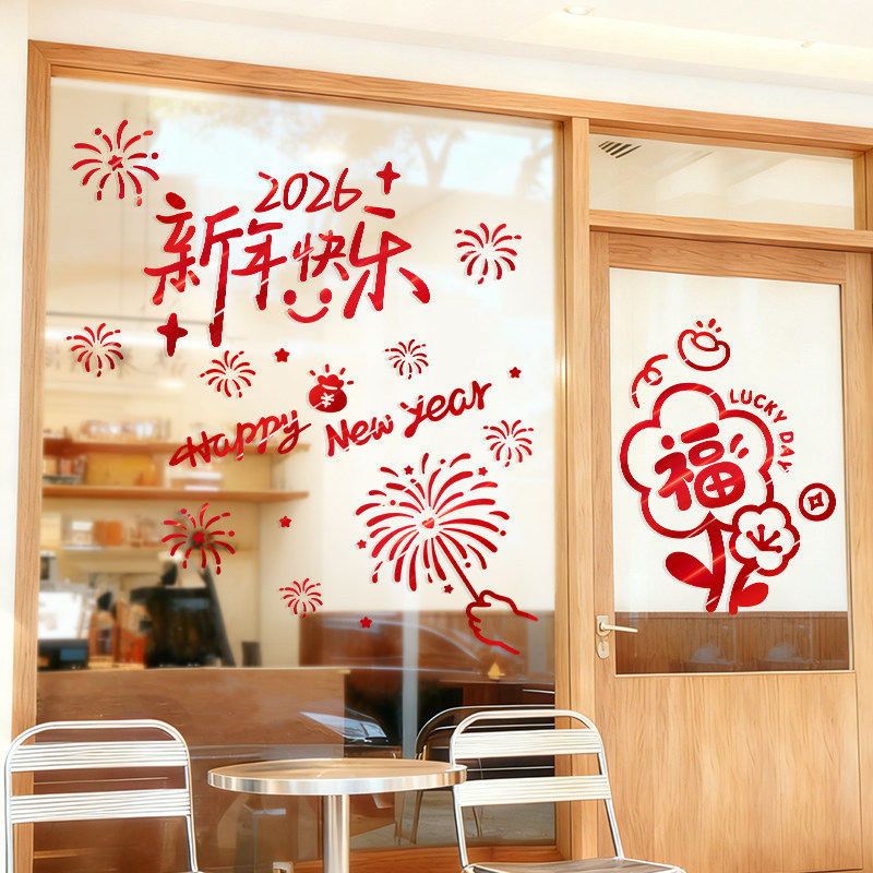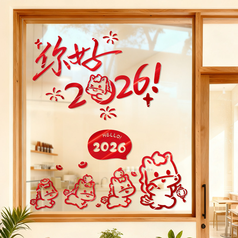 马年装饰品新年玻璃窗贴静电门贴纸2026新款春节过年氛围布置窗花
